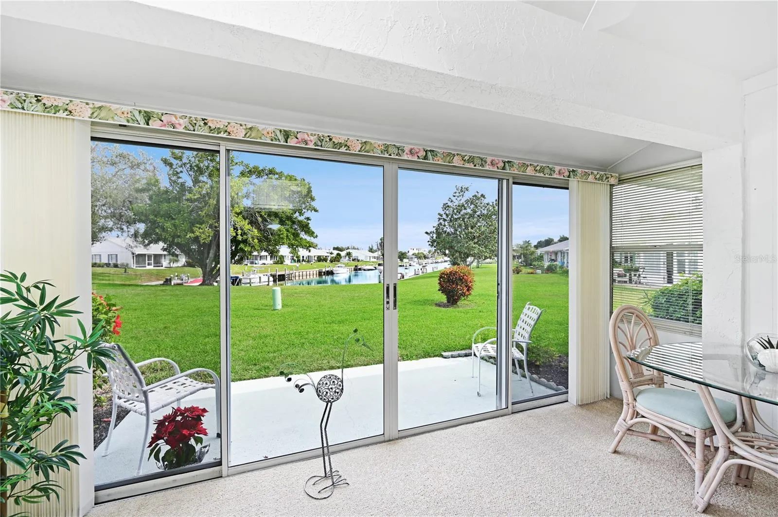 WELCOME TO YOUR COASTAL CANAL-FRONT VILLA- Nestled in the heart of a picturesque bay and canal front community this nicely appointed turnkey furnished residence is ready for your immediate enjoyment. With available boat docks and a prime location near the clubhouse and amenities just around the bend, this villa offers the ultimate Florida lifestyle. MODERN UPGRADES FOR PEACE OF MIND- You’ll appreciate the thoughtfully updated features, including, 2022 impact windows, 2021 Trane HVAC system, and a 2019 Rheem water heater. SUPERIOR CONSTRUCTION & CONVENIENCE- Enjoy the security of a newer 2018 roof with third nails in the roof-wall connectors and solid concrete block construction. A private carport and driveway, along with a 12×5 secure storage unit for electric bikes, beach gear, and sports equipment, add to the villa’s convenience. Plus, guest parking is conveniently located on both sides of the villa. OUTDOOR BLISS- Step onto your spacious waterfront patio, a tranquil retreat for grilling, lounging, and watching mullet, manatees, and dolphins play in the canal. The expansive lawn offers ample space for bocce ball, croquet, and cornhole, while the carport seating area provides the perfect front-porch atmosphere to take in lake views and vibrant sunset skies. A BRIGHT & INVITING INTERIOR- Inside, abundant natural light and an open-concept layout create an airy and welcoming space, ideal for everyday living and entertaining. You’ll enjoy all the lovely views!