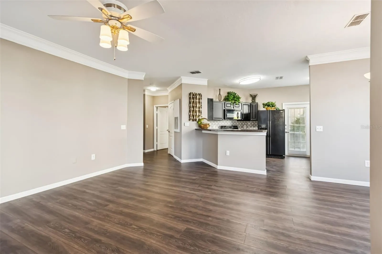 This tastefully renovated first-floor condo combines comfort, convenience, and a touch of luxury in a quiet community setting. The floorplan includes two generous primary suites, each with its own walk-in closet, and 9-foot ceilings accented by crown molding that enhance the bright, open feel of the interior. A spacious kitchen with breakfast bar and eat-in area overlooks the family room, creating an inviting space for everyday living and entertaining.