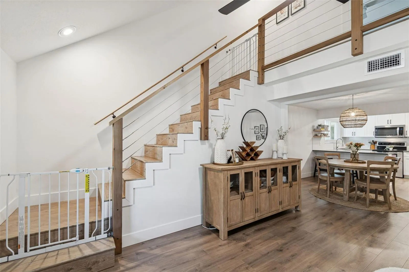 This charming home straight out of a storybook is located in the highly-regarded Bayshore Beautiful neighborhood (Flood Zone X) and just three blocks from Bayshore Boulevard. Completely reimagined in 2022 with everything done from a full interior renovation, new Low-E double-paned windows, fiber cement siding, roof, HVAC, and more. It has been lovingly-maintained with even more upgrades since, and is truly move-in ready. The welcoming curb appeal and front porch sets the tone for what’s to come inside. Enter to a two-story living room with soaring ceilings, a shiplap feature wall surrounded by custom built-ins and anchored by an electric fireplace. The kitchen features sleek Quartz countertops, stainless steel appliances, and a breakfast bar and dining area. The primary bedroom suite is on the first floor with a custom built out closet and an en suite bathroom. Upstairs features two spacious bedrooms and another full bathroom. The outdoor living space is ideal with a screen-enclosed brick-paved lanai overlooking the turfed backyard. A beautiful blend of comfort, convenience, and style, you’ll never want to leave. There is a carport with direct covered access to the home and a storage shed- you won’t even miss a garage! Enjoy being close to the vibrant MacDill Avenue with its shops and dining destinations and having easy access to Publix, Target, Gandy Blvd, and the Selmon Expressway, making it a great location for everyday living and commuting. Schedule your private showing today!