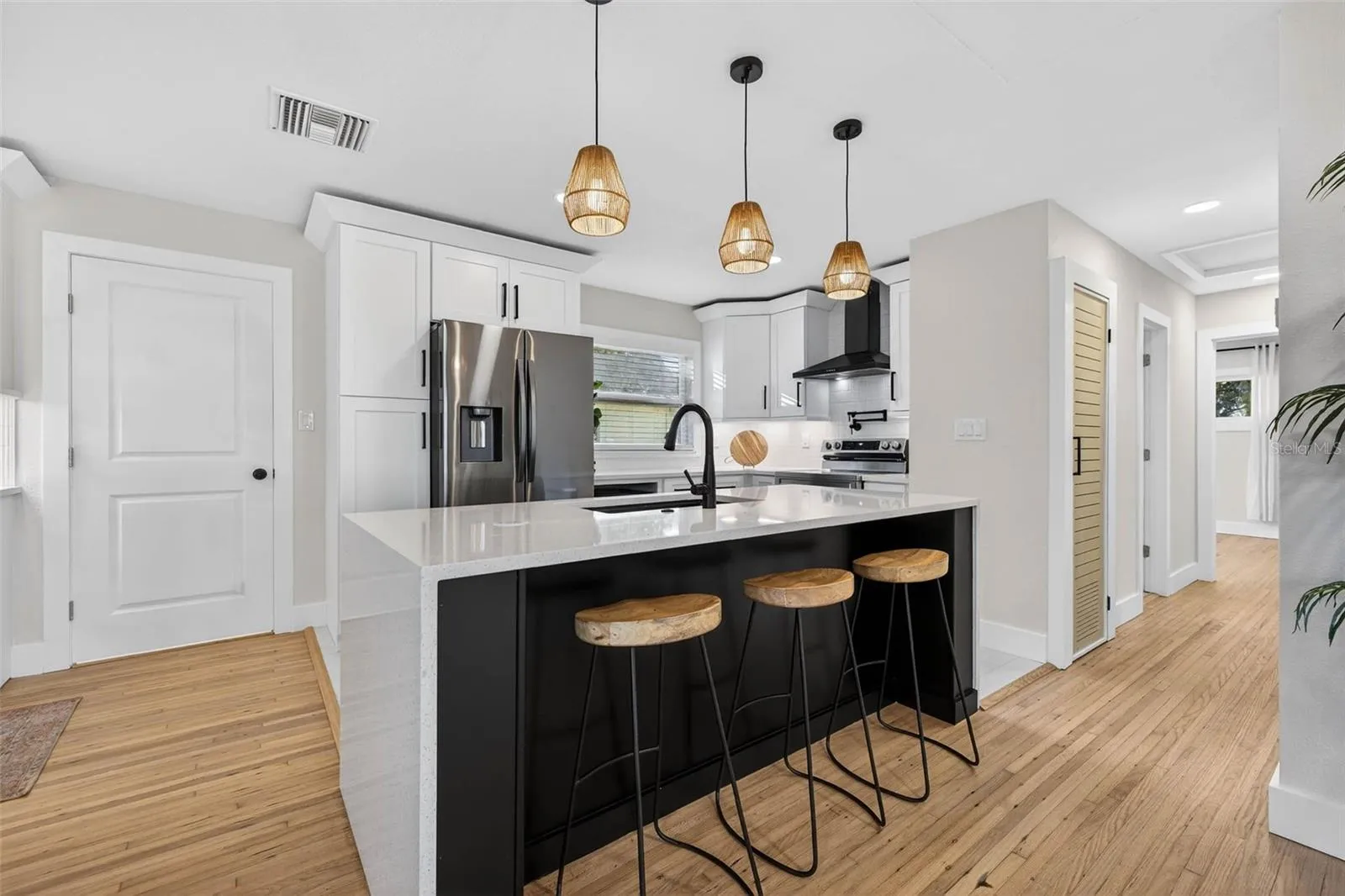 This home has been meticulously updated while maintaining the charm of these gorgeous bungalows. Tray ceilings and original hardwood floors are show stoppers! The heart of the home is the new modern kitchen — is a true standout: new soft close cabinets, waterfall stone countertops, modern backsplash, stainless steel appliances, and the large island makes hosting a breeze. Custom coffee bar for added storage is the cherry on top for java lovers! The layout flows so easily and masterfully utilizes every inch of the home that it feels closer to 1500 square feet of living space. The large living room has wonderful natural light and flows beautifully into the rest of the home.