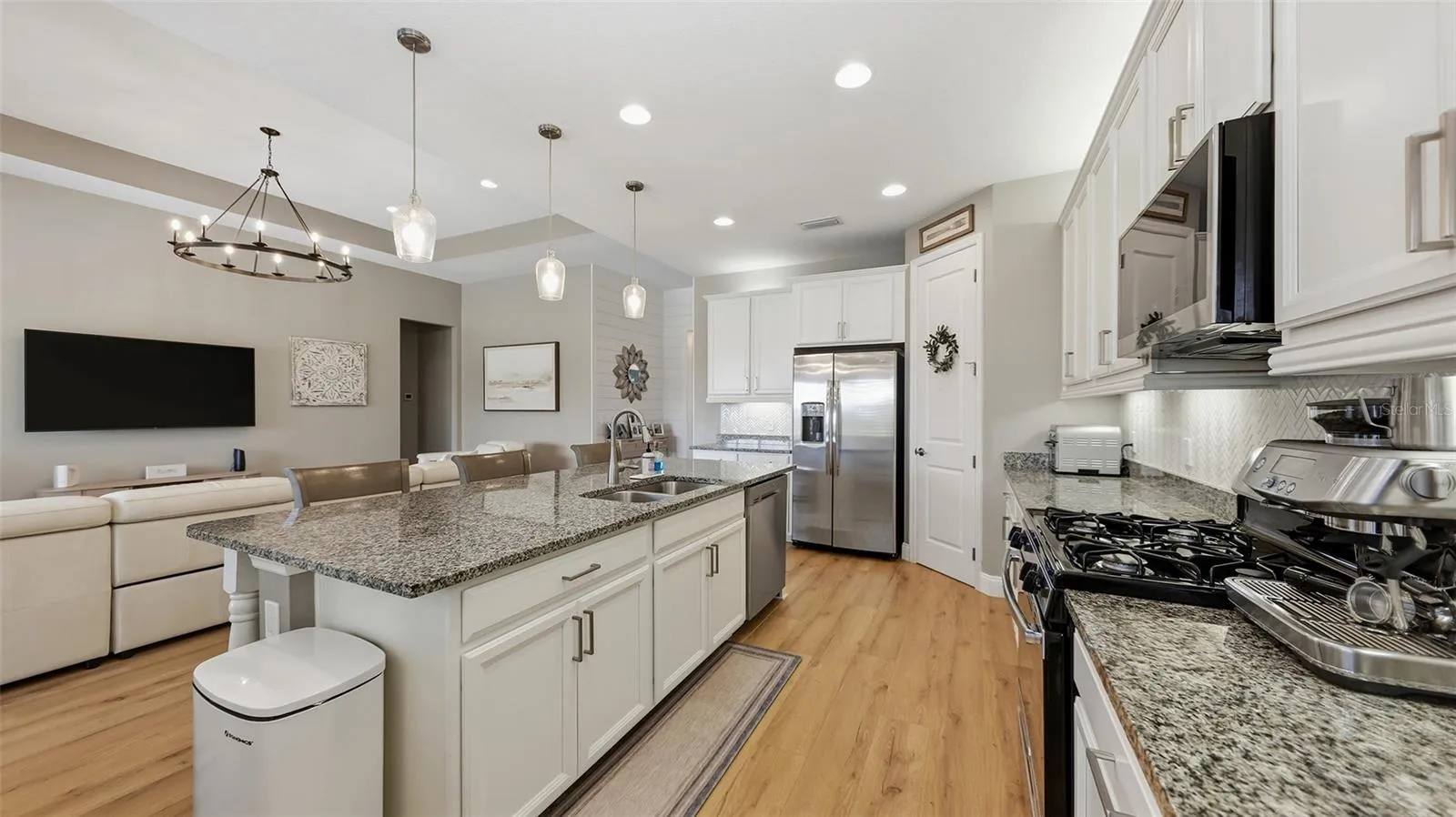 Enjoy the ultimate Florida lifestyle and captivating resort style living. Located in this well sought-after community of Greyhawk Landing with 24- hour gated security. This impeccably kept Allura model, built in 2017 by Homes by Towne, boasts many quality upgrades and offers 3 bedrooms, 2 bathrooms, 1,827 square feet with a 2-car garage on a premium lot with a pond view on a cul-de-sac. Beginning with the lush and mature landscaping, you are led into the impressive entrance which features veneer stone on the front of the home with a paver driveway & walkway. As you enter this pristine and tastefully appointed home, your first view is of the open-floor plan overlooking the gorgeous, covered lanai featuring brick pavers and exceptionally comforting views of the electric heated pool and a spectacular pond view. Features are an open floor plan, high ceilings, gas water heater, low HOA Fees of $70.00/year, prewired for security system, Rough-in for outdoor summer kitchen for gas or electric, newer electric pool heater 2019, new LVP Flooring and baseboards throughout the entire home, tray ceiling in the great room and the foyer, kitchen features upgraded kitchen cabinets with 42” uppers, Moen plumbing fixtures throughout, above and below cabinet lighting with light valance in the kitchen, upgraded 3cm granite counters in the kitchen, tile backsplash and large center island with a walk-in pantry, stainless steel appliances, newer microwave 2023, newer dishwasher 2023, gas range, gas dryer, washer, laundry room is roughed-in for a sink, newer plantation shutters on all windows, upgraded Hurricane Impact main entry door, rain gutters have been placed around entire home, in-wall pest tube system, 16 Seer high efficiency heat pump with variable speed air handler, new landscaping in the back of the home, new shiplap in the entryway of the home as well as the primary bathroom, metal hurricane shutters, pull-down ladder in the garage, upgraded dual lighting for the pool and reclaimed water for the irrigation. The owner’s suite is separated from the guest bedrooms; the primary bathroom has dual sinks and a walk-in shower. The guest bedrooms are all generously sized which share a hall-way bathroom with Verona marble counters.