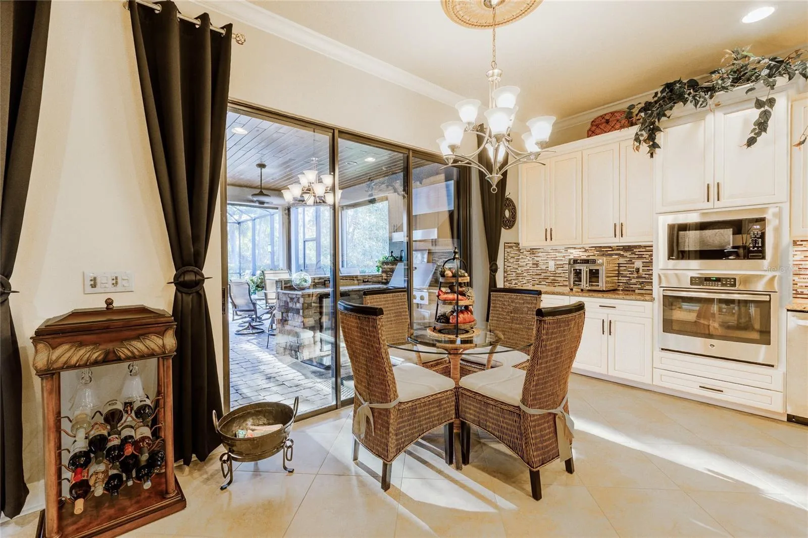 - Lighting, Rain Gutters, Sidewalk, Sliding Doors, Outdoor Kitchen, Shade Shutter(s)