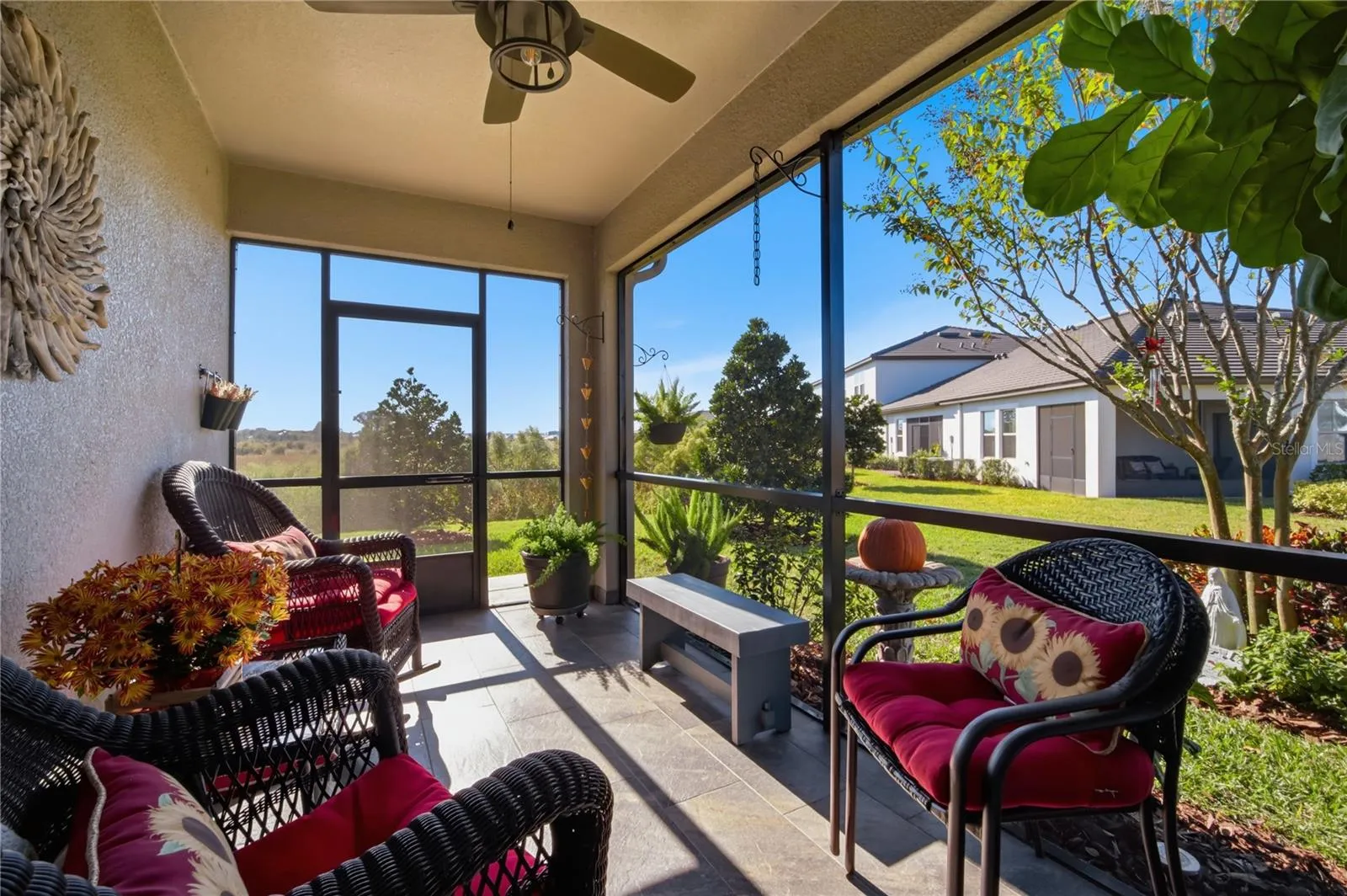 SUNNY FLORIDA IS the PLACE to BE!! No Snow…Just ACRES of sand at this 15 Acre Lagoon in Mirada! Live the RESORT lifestyle in this BETTER THAN NEW villa with A VIEW! Maintenance free so you have time to Rest Easy! Enjoy Conservation behind, no rear neighbors and nice space between units in this Dayspring II villa built by Lennar in 2020. Stackstone accents and landscaped lawn add to the curb appeal of this truly thoughtfully designed one-story home. Entertaining is easy with the versatile bonus room and open-concept living area that is light & bright and connects the kitchen, dining, and living spaces—perfect for gatherings with friends and family. Stunning Kitchen boasts 42″ cabinets with crown, easy glide pull out shelves, Gleaming granite counters and breakfast bar with GE stainless steel appliance package and pantry closet. The private owner’s retreat provides a serene escape with a view of the conservation beyond, featuring a spacious layout and a beautifully designed en-suite bathroom and walk in closet. The other well appointed secondary bedroom and bathroom are situated on the opposite side of the villa for guests privacy. Interior Laundry room with additional storage conveniently off the kitchen. One car garage has room for storage and enters on the guest wing. Screened Lanai is perfect to Rest Easy and take in the natural views and spectacular sunsets. Additional features include Alexa smart speakers, smart home, textured volume ceilings, rounded corners, R-32 insulation, marble windowsills, Schlage combo front door entry deadbolt and 15 seer HVAC for efficient utility bills. Whether you use this as your vacation villa or full time retirement home, this IS the place to BE! Located within the gated 55+ section of Medley at Mirada, residents enjoy an active adult lifestyle with opportunities for jogging, biking, pickleball, and peaceful wildlife views around scenic ponds, as well as access to the upcoming Metro Lagoon with its crystal-clear waters. Beyond the lagoon, Medley at Mirada boasts exceptional private amenities, including a clubhouse with restaurant, bar, ballroom with banquet facilities, fitness center, a resort-style pool, tennis and pickleball courts, plus miles of trails—all easily accessible by golf cart, bicycle, or a leisurely walk. Shopping and eateries within one mile and new highway makes commuting to work, airports, Wiregrass Mall or Premium outlets, Pop stroke, The Krate, comedy club, dueling pianos, theater or the Beaches a breeze! CALL TODAY!