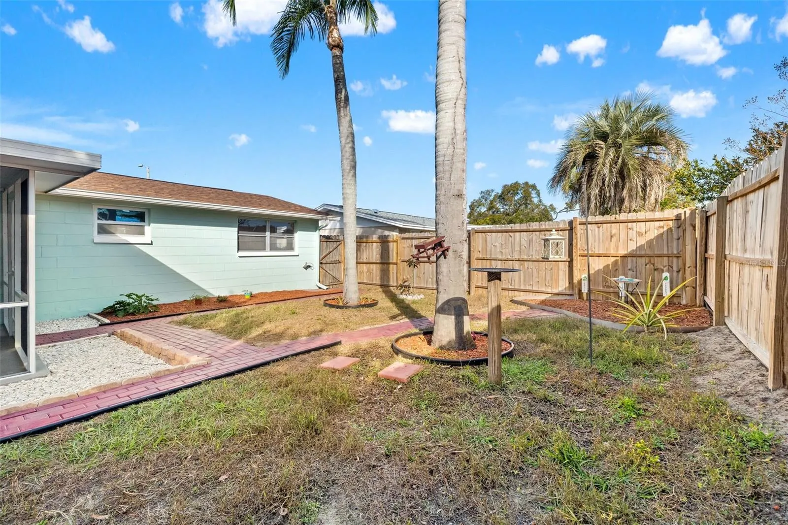 Step outside to a covered and screened porch overlooking a charming backyard oasis complete with bird feeders, an herb garden, paved walkways, and a newly built wood fence. A large shed conveys with the property, along with a rain barrel for easy garden irrigation.