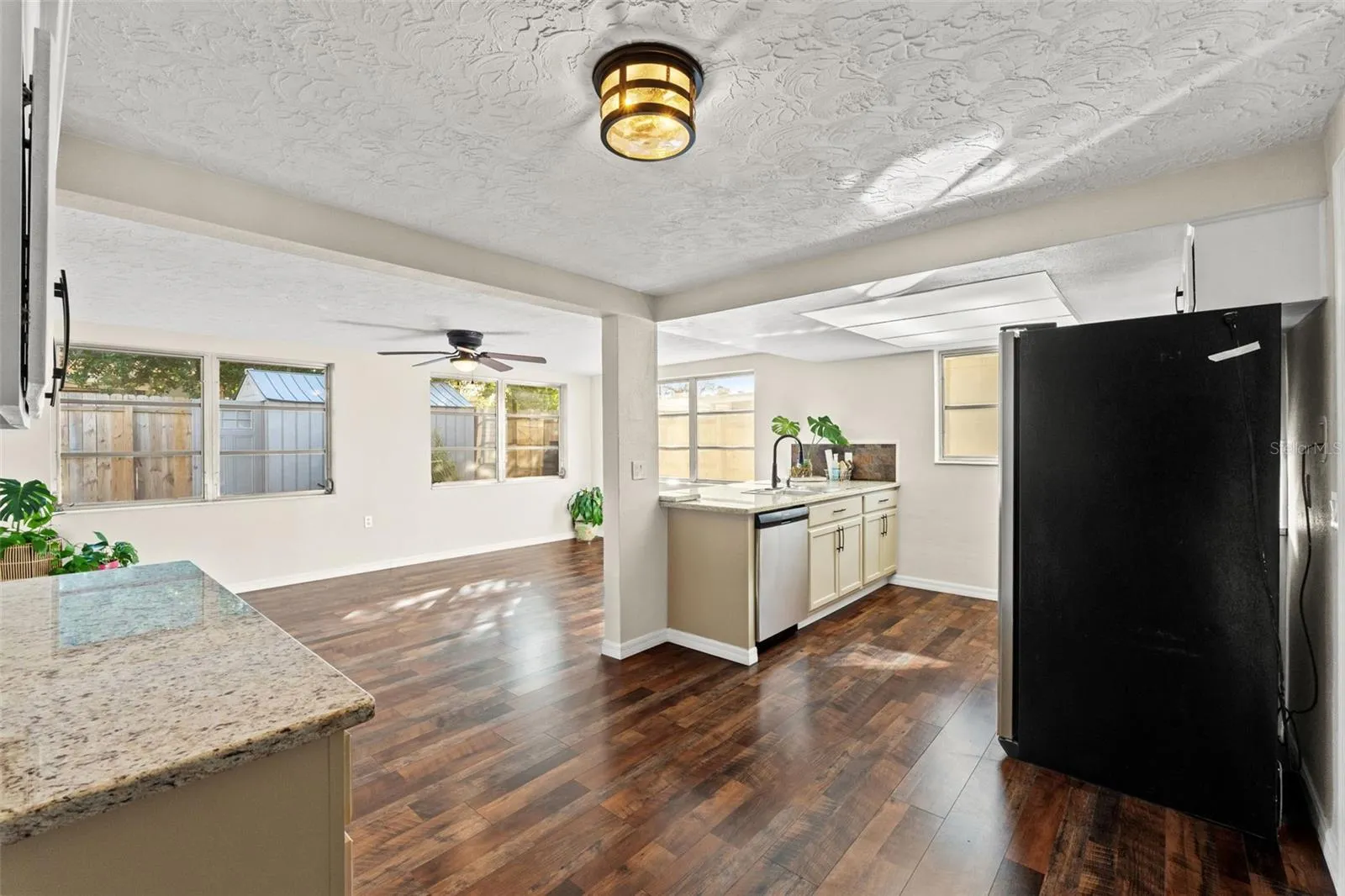 - Ceiling Fans(s), Living Room/Dining Room Combo, Eat-in Kitchen, Kitchen/Family Room Combo, Stone Counters