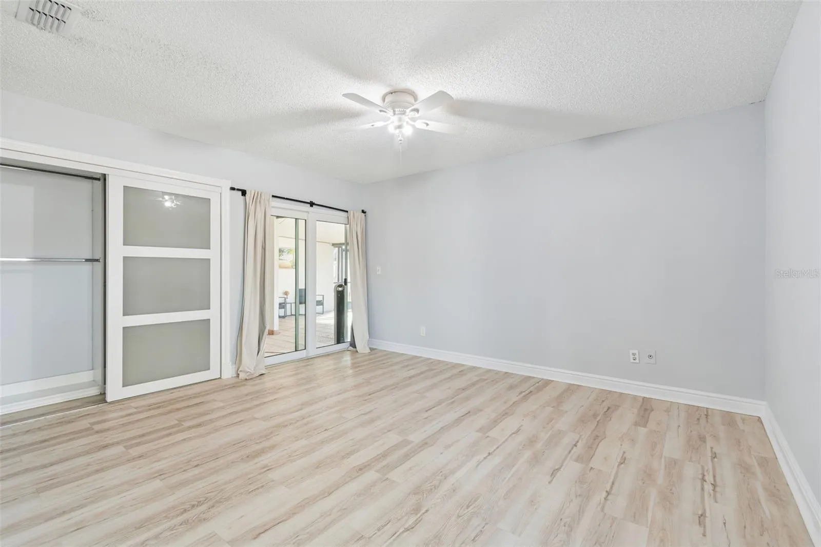 Both primary suites overlook the screened, solar-heated pool, and the guest bathroom has been fully updated. Additional upgrades include all new windows and doors throughout, luxury vinyl flooring in the bedrooms, and a newer HVAC system.