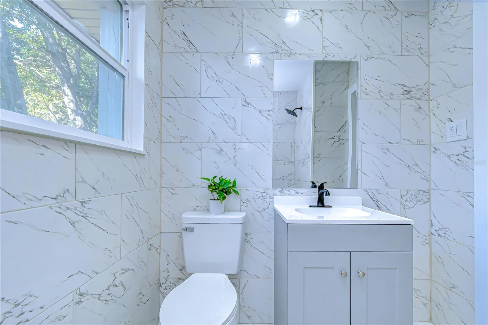 Experience refined Florida living in this fully renovated 3-bedroom, 1-bath home offering 1,183 square feet of thoughtfully designed living space with luxury vinyl flooring throughout. A bright, airy living room serves as the heart of the home and flows seamlessly into the stunning kitchen, featuring quartz countertops, a stylish tile backsplash, brand-new appliances, and premium finishes. The completely remodeled bathroom is finished floor to ceiling with designer tile. Two bedrooms provide generous space and natural light, while the third room provides flexibility for a variety of uses. Step outside to a fully fenced, oversized backyard, ideal for entertaining, relaxation, or play, and enjoy your mornings on the large covered front porch, spacious enough for a table and chairs is perfect for coffee or evening unwinding. Major upgrades provide peace of mind, including a new roof, new HVAC system with updated ductwork, new water heater, and new windows. Located in Flood Zone X, this home is ideally positioned just minutes from Downtown St. Petersburg and Central Avenue, offering easy access to upscale dining, boutique shopping, and vibrant entertainment. Nearby lakeside parks, a splash pad, Boyd Hill Nature Preserve, and the Pinellas Trail support an active, outdoor Florida lifestyle. Schedule your private showing today.