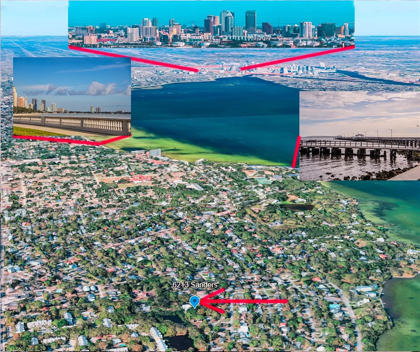 - South on Bayshore Blvd, (R) onto Sanders, (R) again and follow circle round to home on right hand side