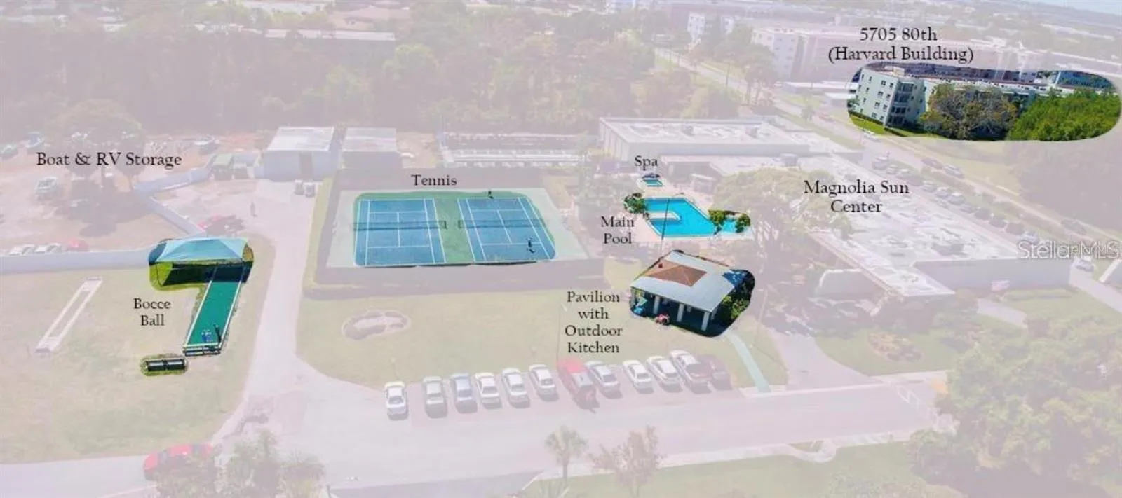 - Clubhouse,Elevator(s),Fitness Center,Laundry,Pickleball Court(s),Pool,Recreation Facilities,Shuffleboard Court,Storage,Tennis Court(s)