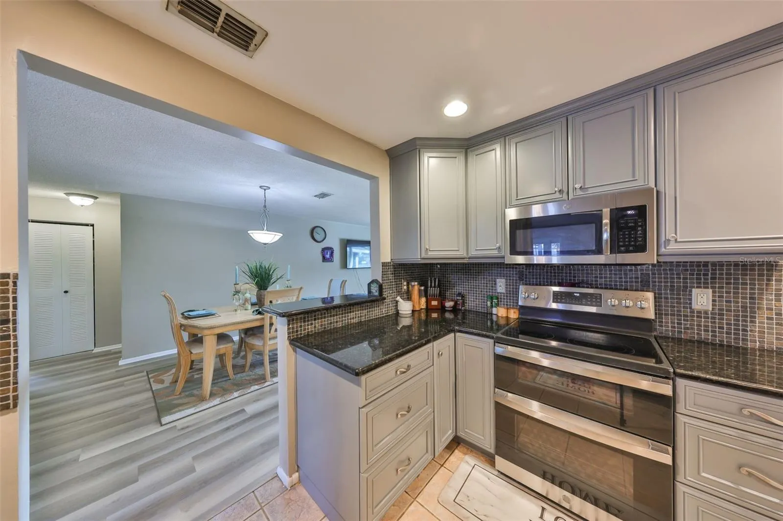 The dining room comfortably accommodates any size family & guests. The kitchen is appointed with granite countertops,
