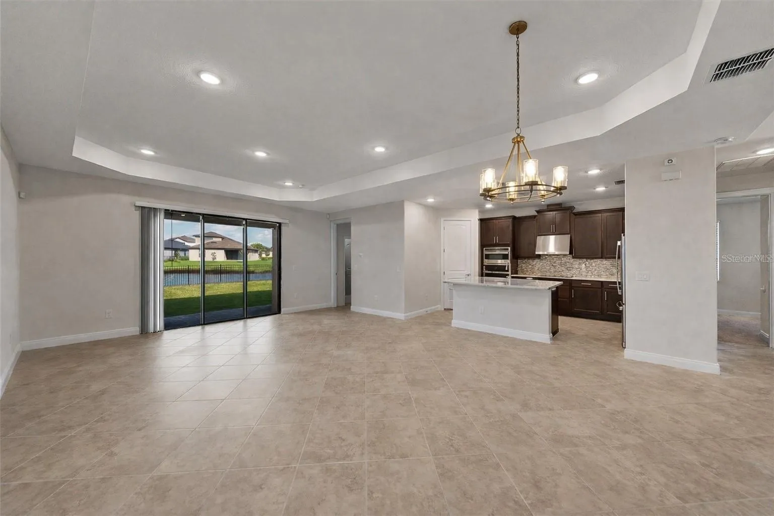 Welcome to this beautifully appointed Single Story 4-bed, 3 **FULL** bath home offering exceptional curb appeal and a thoughtfully designed layout. This **2022** built home is sure to impress! Sitting on a ***PREMIUM POND LOT*** with a ***FULLY FENCED BACKYARD*** This home delivers both privacy and peaceful views. From the moment you arrive, the exterior impresses with newly refreshed landscaping, a paver driveway, and an 8-foot glass-inlay front door. Step inside to a grand entry featuring 12-foot ceilings, three tray ceiling accents, and oversized designer light fixtures that create an immediate wow factor. The split floor plan provides excellent privacy, with a front bedroom highlighted by a charming bay window that also makes an ideal home office. One of the secondary bedrooms is an **EN-SUITE** with its own private bathroom perfect for guests or multi-gen living. Both secondary bathrooms offer quartz countertops and shower/tub combos. The heart of the home is the expansive open-concept living area, filled with natural light from abundant windows, 9’4” ceilings, and a three-panel sliding glass door. The living room and dining room are beautifully defined by a tray ceiling and plenty of overhead lighting. At the center sits a massive quartz-topped island, perfect for meal prep, casual dining, and gathering with friends and family. The gourmet kitchen impresses with 42″ upper cabinets with crown molding, quartz counters, glass tile backsplash, undermount sink, cooktop with stainless steel vent hood, wall oven and microwave, a full suite of stainless steel appliances, and pantry. The spacious primary suite offers serene pond views, two walk-in closets, and a tray ceiling. The en-suite bath features quartz counters, dual sinks, a private water closet, and an oversized walk-in shower with custom frameless glass and built-in bench. Outside enjoy the covered lanai and a tranquil backyard oasis that is fully fenced and overlooking the peaceful pond. **COMMUNITY AMENITIES** Residents of Watergrass enjoy top-tier community amenities that include an Olympic-sized lap pool, two resort-style pools, splash pad, clubhouse, dog park, fitness center, basketball and tennis courts, trails, and playgrounds. **SCHOOLS** Zoned for highly rated public schools. Magnet and Charter schools in the area are the Pinecrest Academy Wesley Chapel (K-8) Innovation Preparatory Academy (KG-8), Kirkland Ranch Academy of Innovation (9-12) and Kirkland Ranch (PK-8). **AREA AMENITIES** The location is unbeatable, with a new Publix, gas stations, Starbucks, and more nearby. Nestled in the desirable city of Wesley Chapel, this home offers quick access to I-75, the Tampa Premium Outlets, Wiregrass Mall, endless dining options, and is within an hour of Florida’s world-famous Gulf Coast beaches. Beautifully maintained, thoughtfully upgraded, and perfectly located, this home truly has it all.