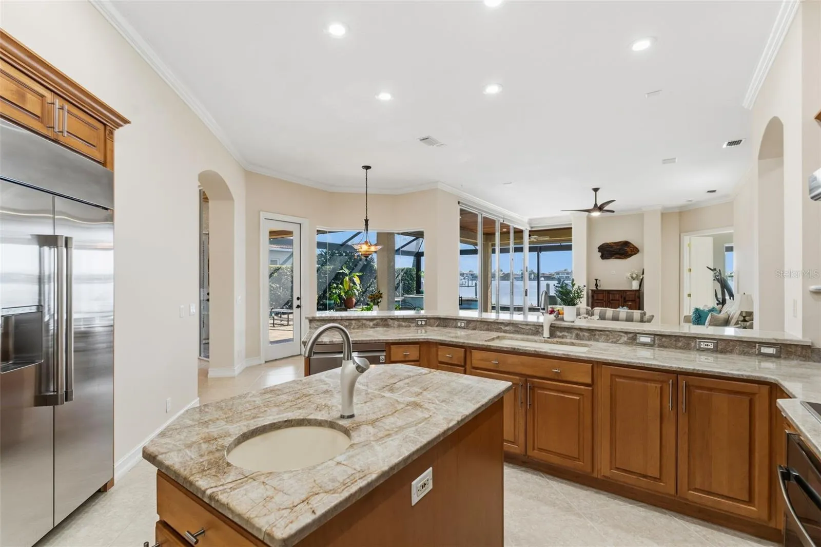 The chef’s kitchen is designed for both function and style, featuring NEWER appliances 2020-2024, QUARTZITE countertops, dual sinks, and abundant prep space. Open to the family room, the layout naturally draws you toward the waterfront views, creating a seamless flow for entertaining and daily living. You’re going to LOVE the WATER views from almost EVERY room in the home!