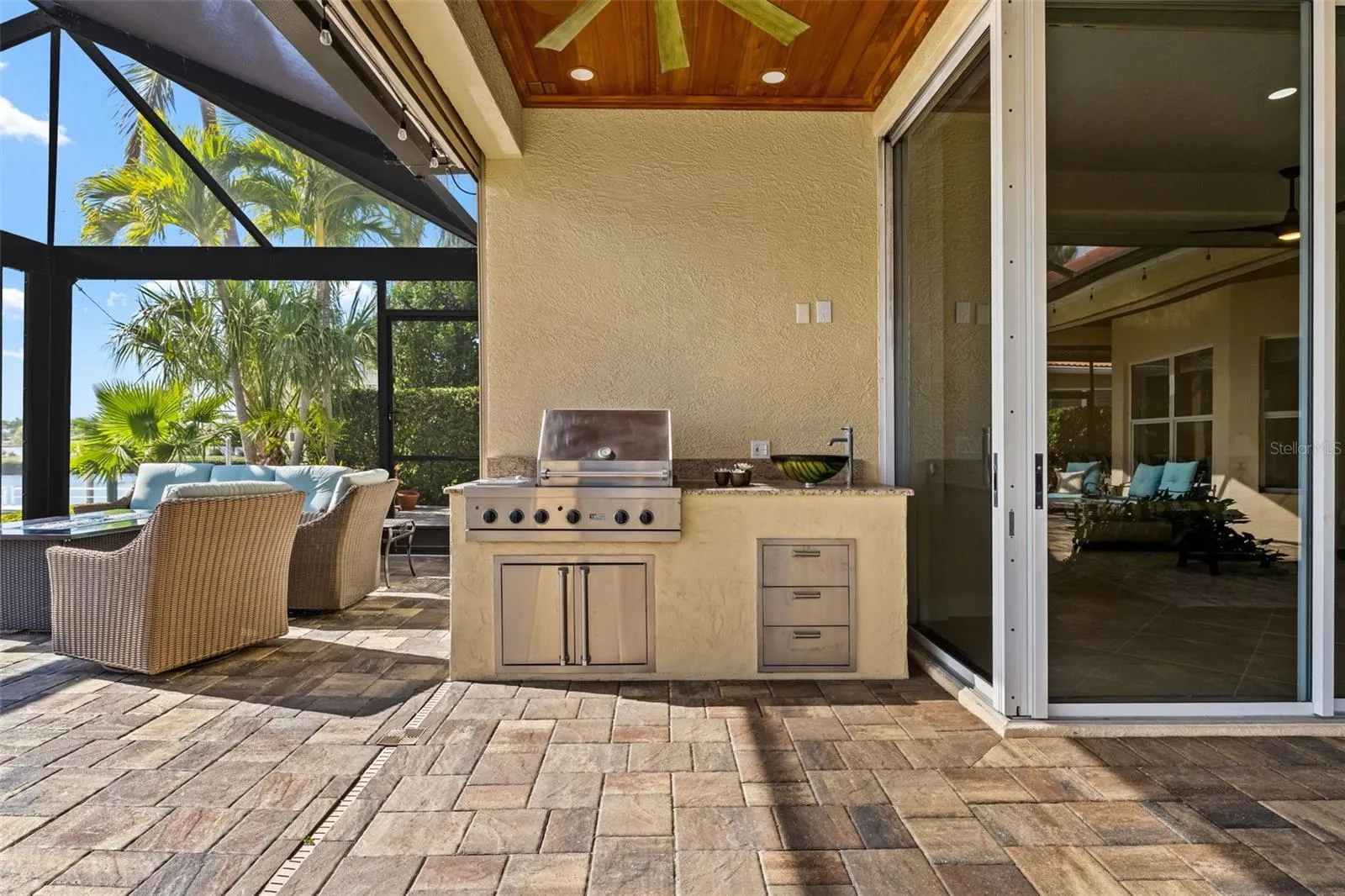 - Lighting, Balcony, Rain Gutters, Sidewalk, Sliding Doors, French Doors, Outdoor Grill, Outdoor Kitchen