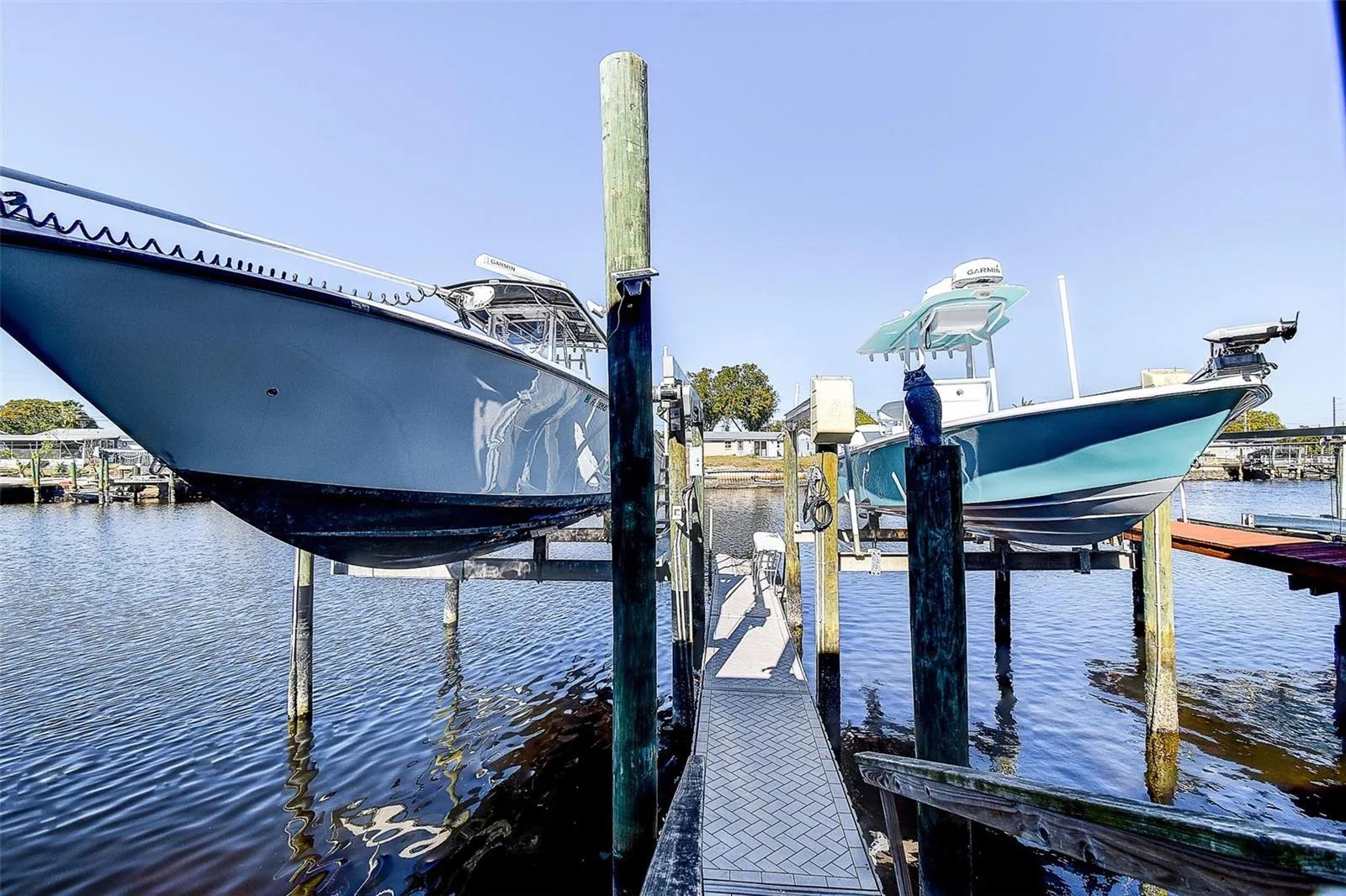 One or more photo(s) has been virtually staged. FINALLY!!!! This spacious 3 bedroom, 2.5 bath WATERFRONT home offers coveted Gulf access without the premium price tag! AND NO HOA!! You will not find a home on the water with these amenities for this price anywhere! Inside, soaring vaulted ceilings and three sets of sliding glass doors fill the open concept living area with natural light and water views. The kitchen is built for entertaining with a large bar top, solid wood cabinetry, stainless steel appliances, and granite countertops. Upstairs, the oversized primary suite features a private en suite bathroom with a large soaking tub, walk-in shower, double vanity and walk-in closet. On the third floor you will find 2 generously sized bedrooms with a large Jack-and-Jill style bathroom ensuring privacy from both sides. Outdoor living SHINES with a large Trex deck (new in 2024) covered by an aluminum awning (Also 2024) perfect for morning coffee or evening sunsets. Boating enthusiasts will love the large boat dock equipped with a 10,000 lb boat lift, a floating jetski/ john boat dock, and a NEGOTIABLE 20,000 lb lift. PUT YOUR TOYS IN AT THE END OF THE STREET!! BOAT RAMP 100 FT AWAY!! Additional highlights include a two- car garage with a 220V EV charging port, nearly 400 square feet of extra storage space under the home, NEW ROOF IN (OCT 2021), AND TWO NEW AC SYSTEMS IN (DEC 2023) 3 ton, and a 3.5 ton. Come live the dream today! ASSUMABLE FLOOD INSURANCE AT $1,604 FOR THE YEAR.