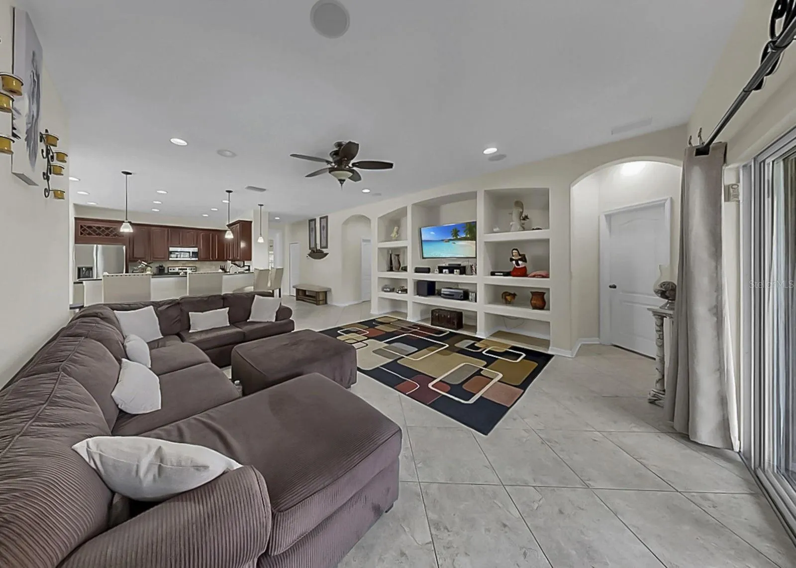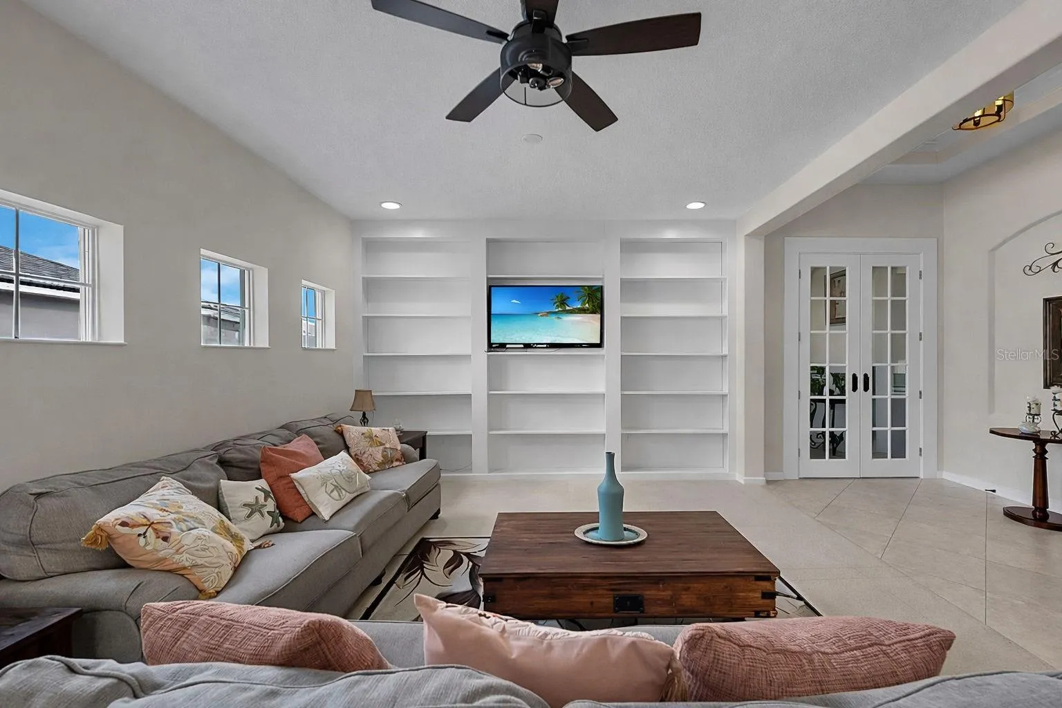 Beautiful 4 Bed/3 Bath POOL Home, with no rear neighbors, located in the Desirable and Gated community of Mira Lago! Complete with a Saltwater Pool and Heated Spa with waterfall, this is the epitome of Florida living! The double door entryway leads into an open and inviting floorplan, with 9ft ceilings, and lots of natural light throughout. The formal living and dining area is a great space which includes wall built-in’s and flexibility for use. Entering through the 8ft French Doors, you come upon the amazing eat-in kitchen with TONS of counterspace and cabinetry, stone counters, and stainless appliances. The perfect place to entertain and host gatherings! The large family room, with built-in entertainment center, offers great space and overlooks your beautiful pool oasis outdoors! The primary suite offers the perfect space to unwind, with 2 LARGE walk-in closets, and an en-suite bathroom complete with garden tub, double sink vanity with Corian counters, and a step-down shower. The additional bedrooms and baths are spacious, with one of the rooms having an en-suite bath with access to the pool area. Outdoors, your pool area is private and screened. This is truly a beautiful home that is move in ready with the opportunity to still make it your own! Updates include: NEW ROOF 2025, New Water Heater, New Pool Pump, and lots of additional add-in’s. Mira Lago is a wonderful and active community (NO Flood Insurance Required), with low HOA and CDD, that is centrally located close to Tampa Bay, water entertainment, shopping, dining, highways, MacDill AFB, stunning gulf beaches, and all that the area has to offer! The PERFECT place to call HOME!