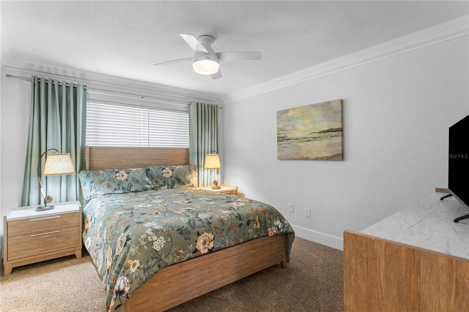 - Ceiling Fans(s), Crown Molding, Walk-In Closet(s), Living Room/Dining Room Combo, Primary Bedroom Main Floor, Window Treatments, Stone Counters, Dry Bar