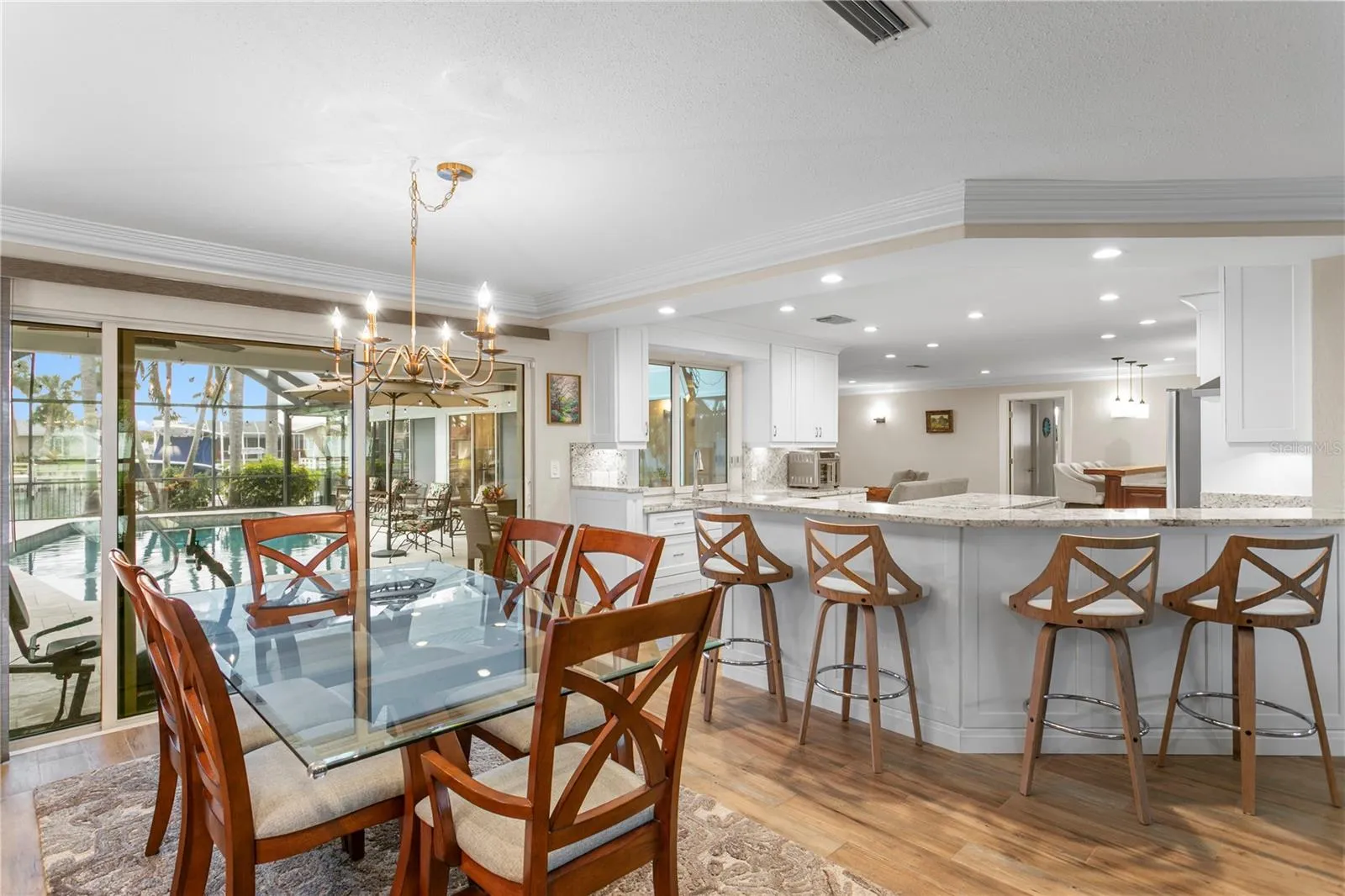 Experience the FLORIDA COASTAL LIFESTYLE you’ve always dreamed of. This beautifully updated waterfront home offers a HEATED POOL, direct Intracoastal access, and a PRIVATE DOCK with a 16,000 lb lift plus space for a SECOND VESSEL—just minutes from open boating waters. From the moment you arrive, the home stands out with its lush landscaping, manicured lawn, PAVER DRIVEWAY, fresh exterior paint, and NEW ROOF. Sunlight dances across the exterior, hinting at the warmth and style waiting inside. Step through the welcoming foyer and into a living space designed for COMFORT AND ELEGANCE. Crown molding, thoughtfully placed lighting, and a COZY FIREPLACE create an inviting atmosphere perfect for relaxing or entertaining. The dining area flows seamlessly from the living room and overlooks both the pool and kitchen—an ideal setup for gatherings, whether you’re serving from the outdoor grill or your BEAUTIFULLY UPDATED KITCHEN.