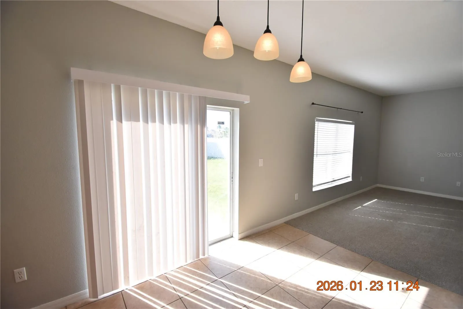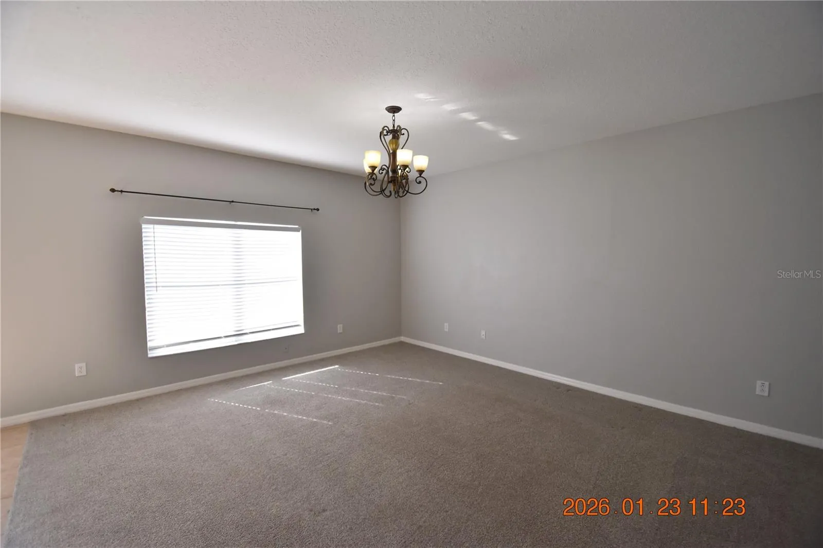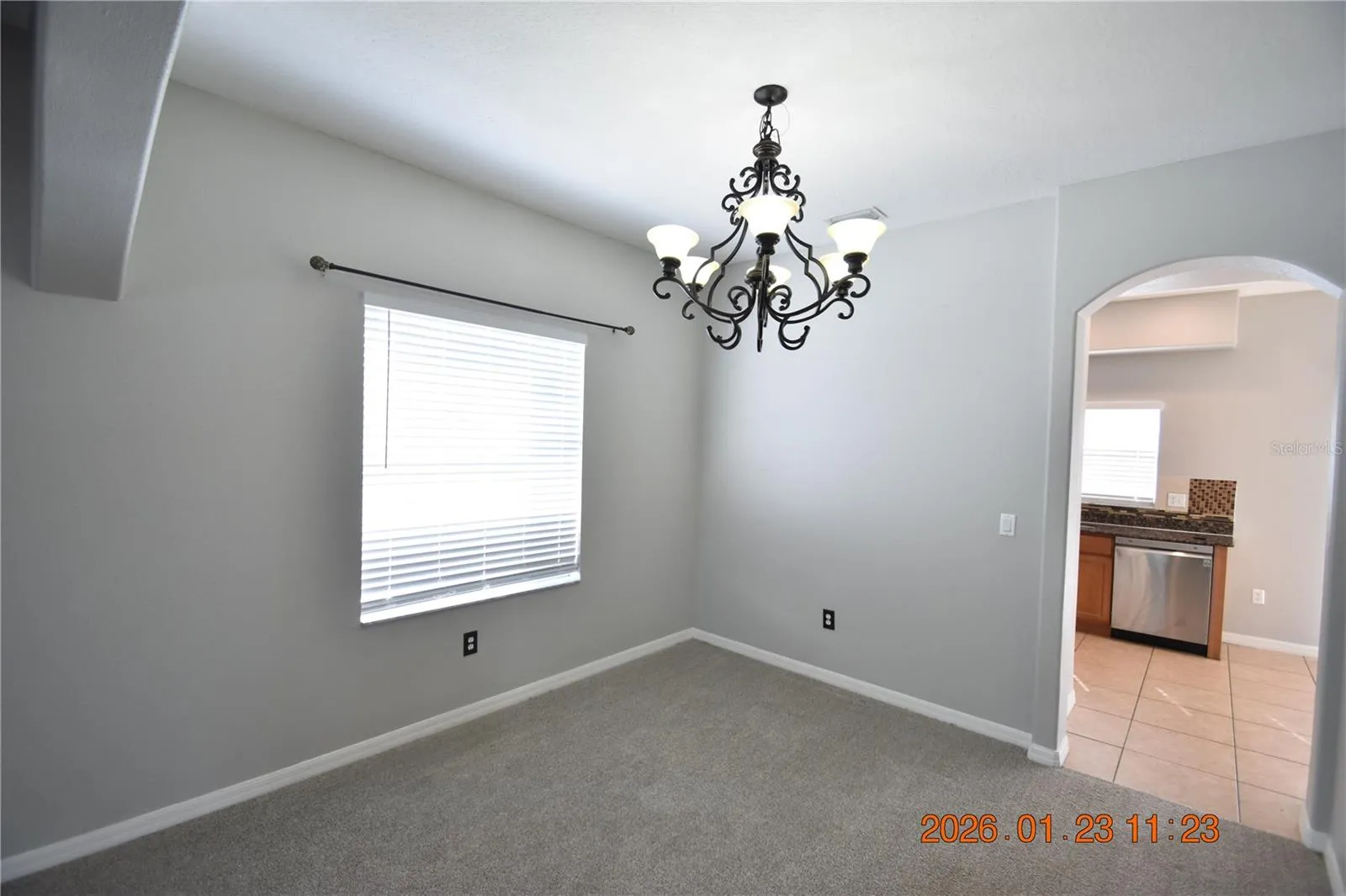 This spacious kitchen has plenty of cabinet space, granite counters and a decorative backsplash for the chef!