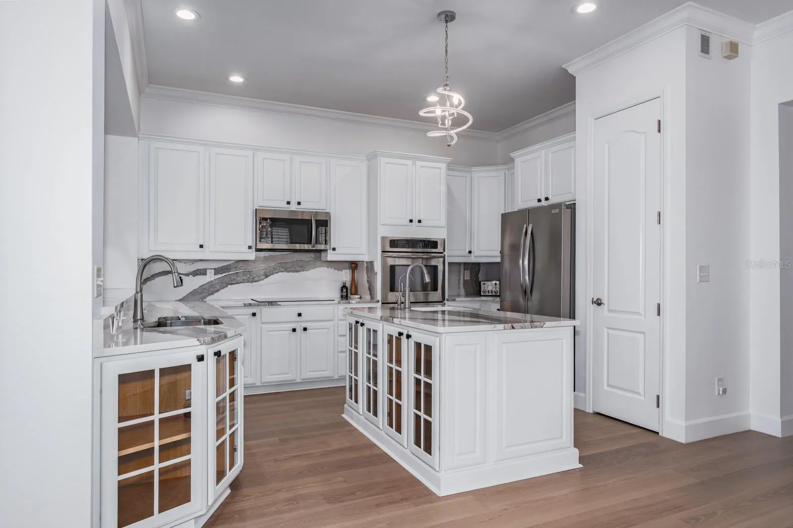 - Ceiling Fans(s), Crown Molding, Open Floorplan, Walk-In Closet(s), Eat-in Kitchen, Split Bedroom, Window Treatments, High Ceilings, Stone Counters, Solid Wood Cabinets, Built-in Features, PrimaryBedroom Upstairs