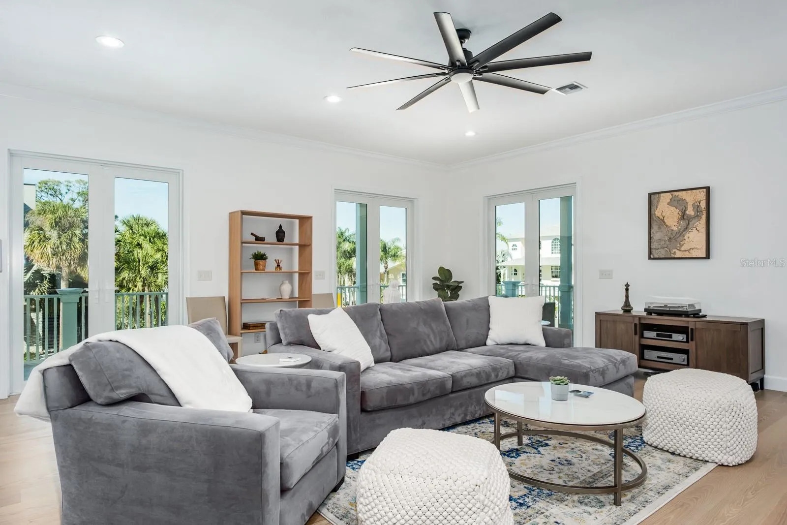Set on a quiet cul-de-sac of just six homes in the sought-after coastal village of Ozona, this exceptional Key West–inspired residence delivers refined Florida living in a community nestled on the peaceful Sutherland Bayou. Offering 4 bedrooms, 3.5 baths, a dedicated office/den, and an oversized 4-car garage, the home is thoughtfully designed for both everyday comfort and effortless entertaining. The homesite spans over a quarter-acre and the property features more than 1,800 square feet of expansive wraparound balcony space across two levels—perfect for taking in bayou breezes, morning sunrises, and evening sunsets. Built with longevity in mind, the first floor is solid block construction and paired with double-pane impact windows, all-new impact-rated French doors, and a new roof installed in 2023. The ground level welcomes you with soaring ceilings, an impressive foyer, and a versatile bonus area with endless possibilities (not included in the living square footage), along with access to two separate 2-car garages finished with epoxy flooring—one pre-wired for EV charging. Upstairs, fabulous white oak engineered wood flooring flows throughout, creating warmth and continuity across the main living areas. The updated kitchen is both stylish and functional, featuring custom wood cabinetry with pull-out storage, quartz countertops and backsplash, stainless steel appliances, an induction cooktop, breakfast bar and generous prep space. The kitchen opens seamlessly into a spacious great room highlighted by 10-foot ceilings, built-in cabinetry, and centered by a cozy wood-burning fireplace. New impact-rated French doors, accented by Hunter Douglas plantation shutters, lead to a large balcony ideal for indoor-outdoor living. The main living level also includes a guest bedroom with adjacent powder room, a private office/den with French doors opening to the balcony, and a separate full bath on the north side of the home—perfectly positioned for pool access. The top-floor owner’s suite offers a tranquil escape, complete with double walk-in closets, a modern ceiling fan, and a spa-like bath featuring a soaking tub, glass-enclosed shower, and dual vanities. Two additional guest bedrooms, a beautifully renovated full bath, and access to the upper-level balcony with sweeping views complete the third floor. All bathrooms have been fashionably updated with quartz countertops, luxury vinyl plank flooring, designer lighting, and designer tilework. Outside, the private backyard is designed for low-maintenance enjoyment, featuring a sparkling saltwater pool and spa, vinyl fencing, and artificial turf—ideal for relaxing or hosting gatherings. Energy-efficient solar panels support the water heater, helping keep utility costs low. Additional upgrades include three new AC systems (2023 & 2024), hot water heater and pool pump (2024), LED lighting, crown molding, wainscoting, designer chandeliers, fresh interior paint, and lush landscaping. With no HOA and transferable flood insurance at just $725/year, this home offers both luxury and peace of mind. Located in a golf cart–friendly neighborhood just minutes from Ozona’s waterfront dining, downtown Palm Harbor, top-rated schools, Honeymoon Island, Clearwater Beach, and the renowned Innisbrook Golf Resort—home of the Valspar Championship. This is a rare opportunity to own a beautifully upgraded coastal retreat that perfectly balances location, lifestyle, and luxury. Schedule your private showing today.