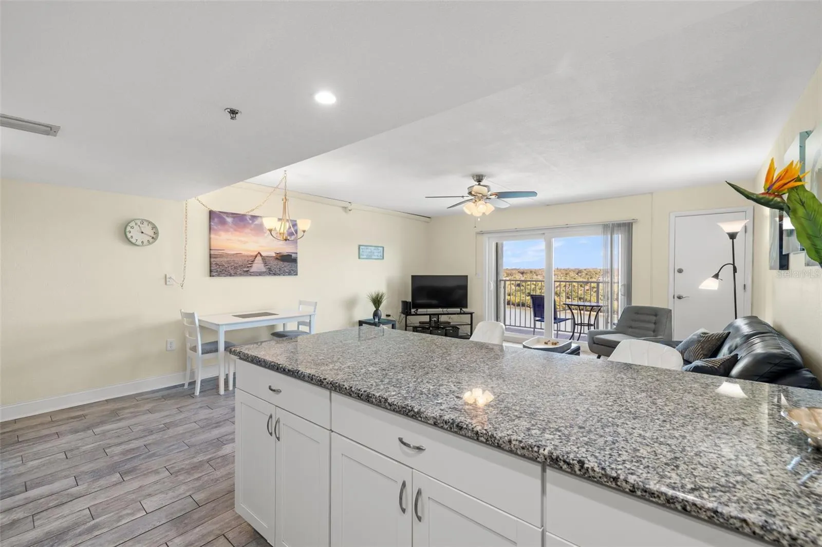 - Ceiling Fans(s), Open Floorplan, Living Room/Dining Room Combo, Window Treatments, Stone Counters
