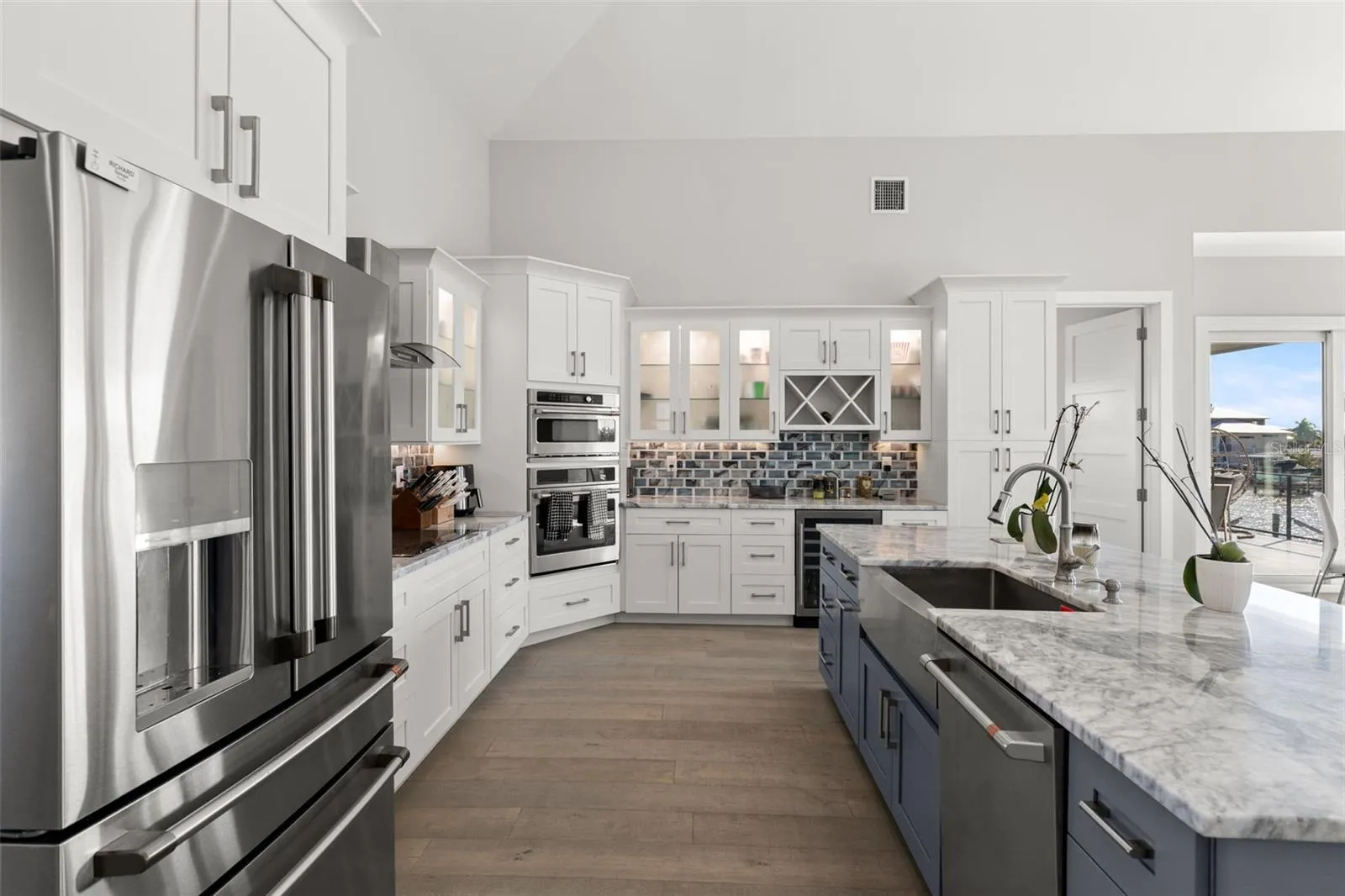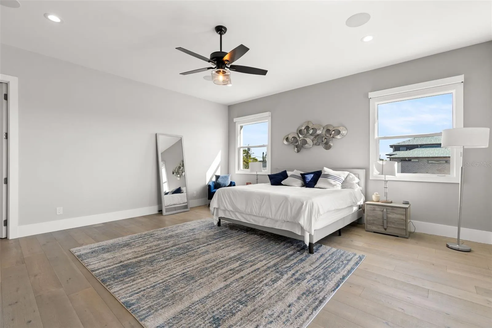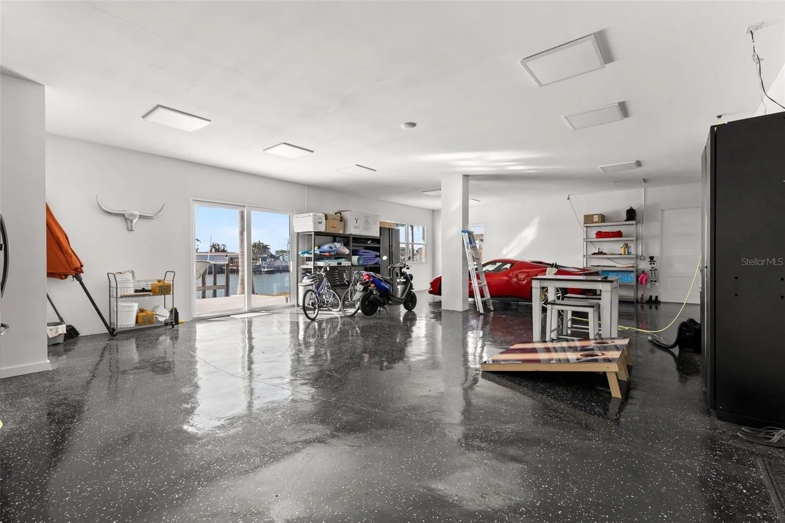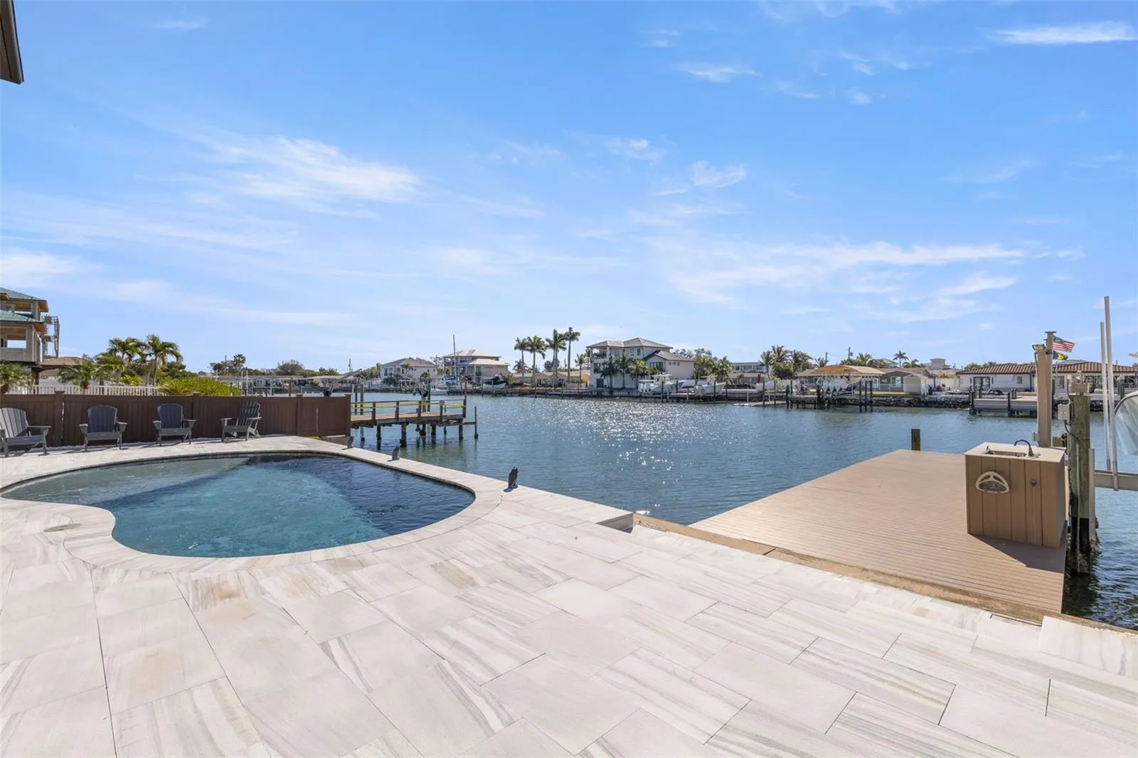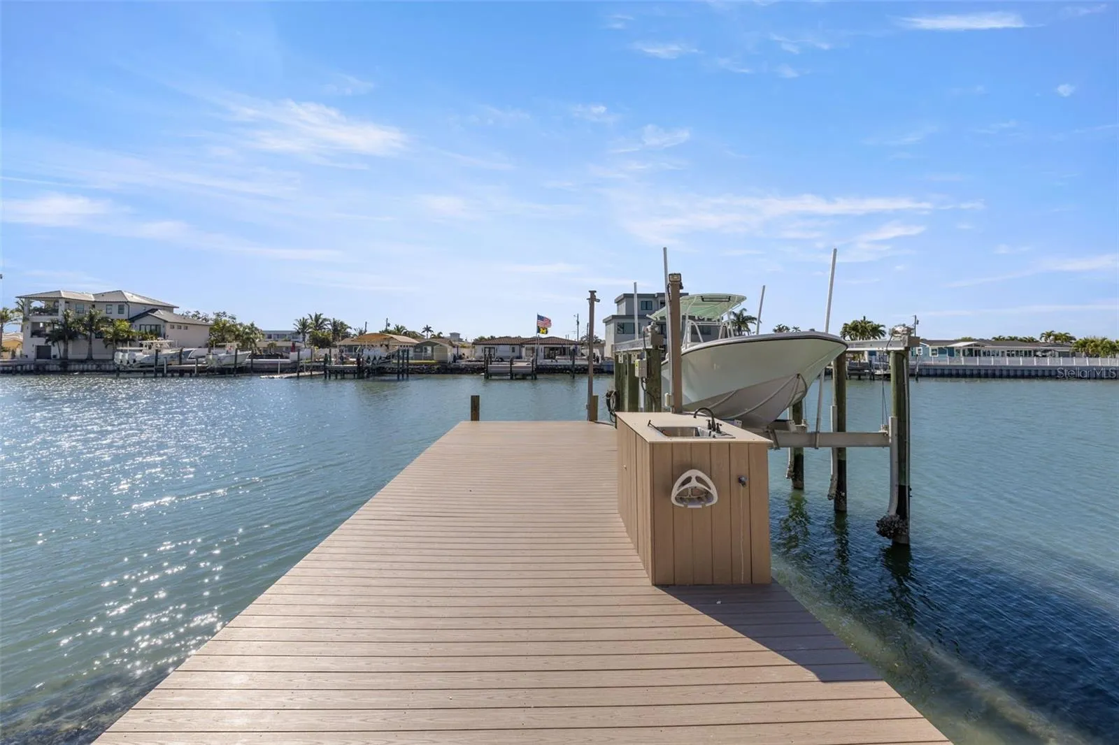 Superior construction, exceptional craftsmanship, and thoughtful design define this 2020 built custom waterfront residence. Located in the coveted Causeway Isles neighborhood, the home was built to exceed standards with solid concrete block construction, hurricane-rated impact windows and doors, metal roof, and Icynene spray-foam insulation—offering durability, efficiency, and long-term peace of mind. As a fully integrated smart home, Alexa-enabled controls enhance comfort, convenience, and energy performance throughout. The entry begins with oversized 16-foot doors, opening to a light-filled foyer anchored by a striking floating staircase. The main living level unfolds upstairs into an expansive open-concept layout with 22-foot vaulted ceilings, wide-plank oak flooring, and sweeping water views. The kitchen is a coastal statement with two-tone cabinetry, quartz surfaces, premium stainless appliances, and an oversized island centered around a farmhouse sink. The primary suite offers a serene escape, complete with water views, 10 foot ceilings, electric blackout blinds, and an enormous walk-in closet. The spa-style bath rivals a five-star resort, featuring dual quartz vanities, a large glass-enclosed shower, and a deep soaking tub. A thoughtfully designed split-bedroom layout ensures privacy and comfort for guests. The exterior is finished with stunning Tabby Shell stucco, slip-resistant pavers, a resort-style pool, covered outdoor kitchen, and ample space for entertaining. Enjoy unforgettable Treasure Island sunsets from the upper-level balcony. Boaters will appreciate the exceptional dock setup, with a 16,000-lb lift, deep protected water, Trex decking, and quick access to Boca Ciega Bay and the Gulf of Mexico. The six-car garage has tons of space for storage, work areas, and has an additional half bathroom.