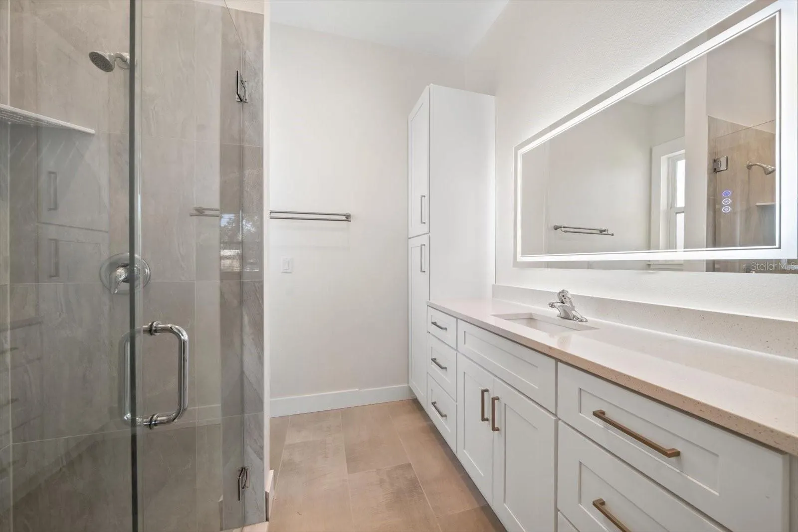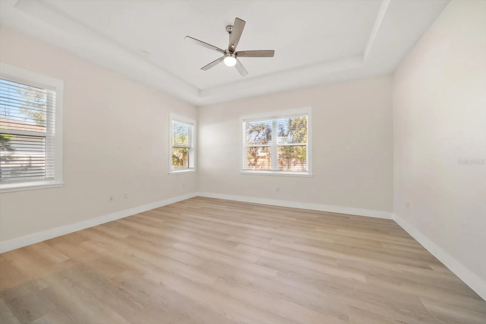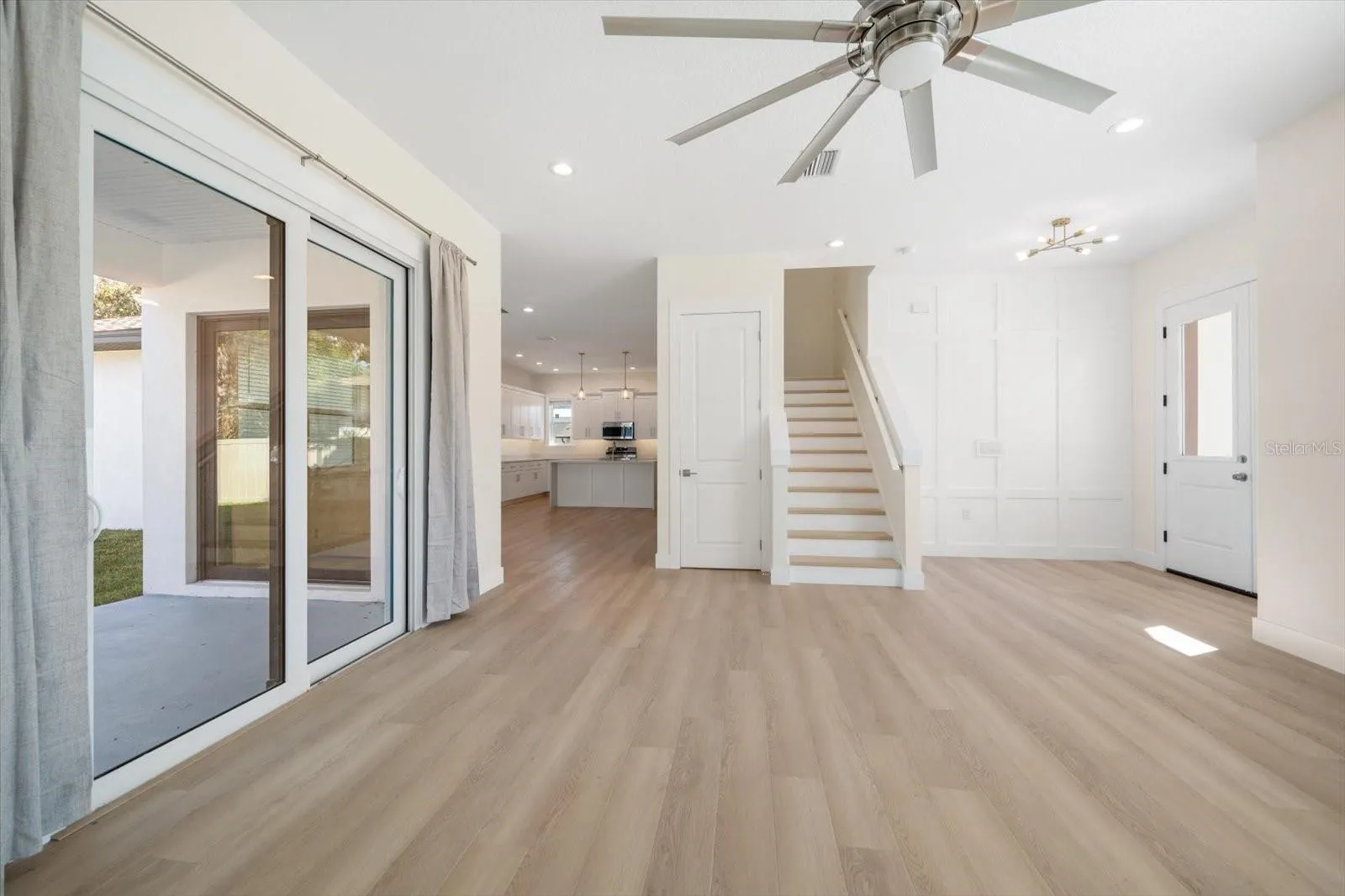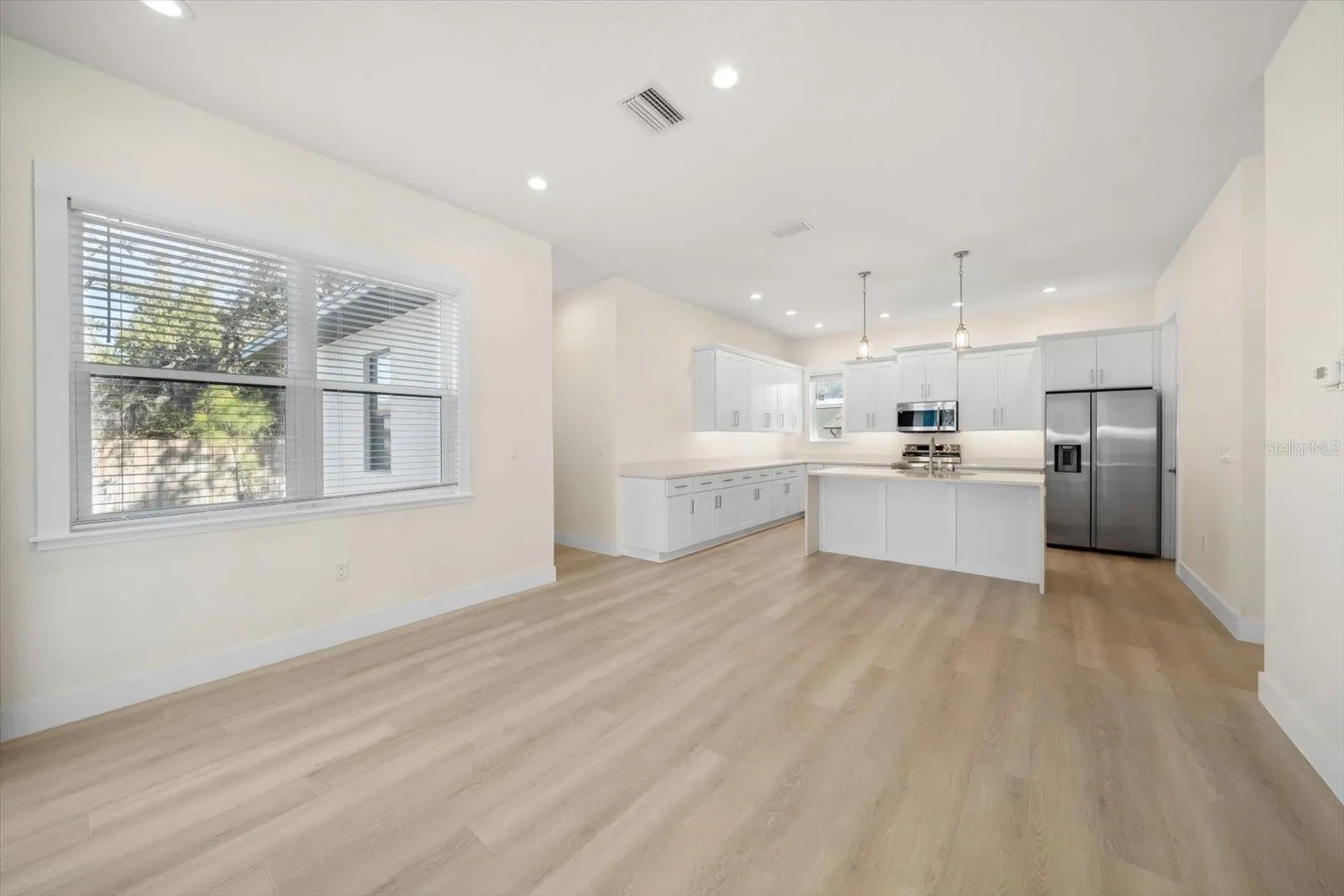 Set on a peaceful street, this 2025 built residence offers standout curb appeal and thoughtfully designed modern living throughout. From the moment you enter, dramatic ceiling heights and abundant natural light create an airy, welcoming atmosphere, complemented by refined details such as custom wainscoting and a sophisticated neutral designer palette. The open-concept layout is ideal for both daily living and entertaining, anchored by a showpiece kitchen with a waterfall-edge island, bar seating, pendant lighting, stainless steel appliances, and a generous walk-in pantry. The kitchen flows seamlessly into the expansive family and dining areas, while sliding doors lead to a covered patio and a fully fenced, private backyard with ample space to design the pool of your dreams. The serene primary suite is a bright and comfortable retreat featuring a large walk-in closet and a spa-style bath with a walk-in shower, LED-lit mirror, and plentiful storage. Secondary bedrooms are spacious and well lit, offering built-in closet features and easy access to a large shared bath with dual sinks and a tub/shower combination. A convenient half bath positioned near the garage entry and main living space adds extra flexibility for guests. Perfectly located near shopping, restaurants, and beautiful beaches, this newly completed home blends quality construction, stylish finishes, and an unbeatable location.