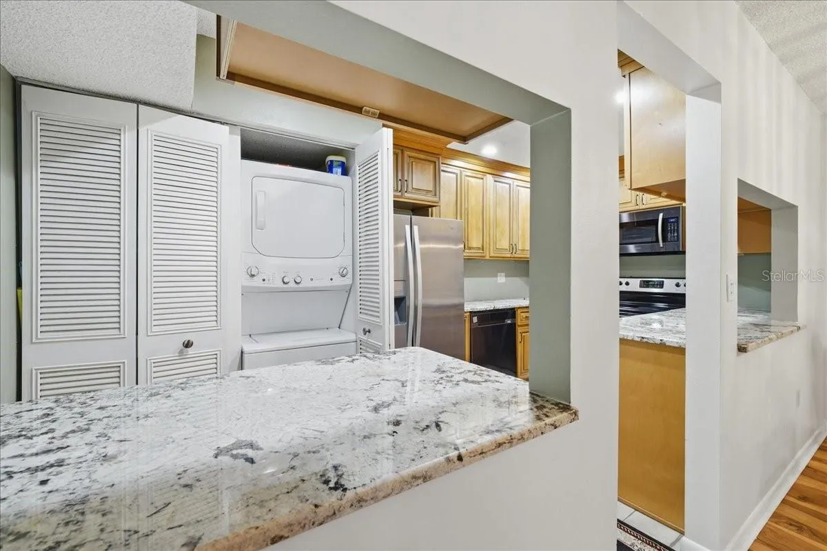 - Inside, Laundry Closet, Electric Dryer Hookup, Washer Hookup, In Kitchen