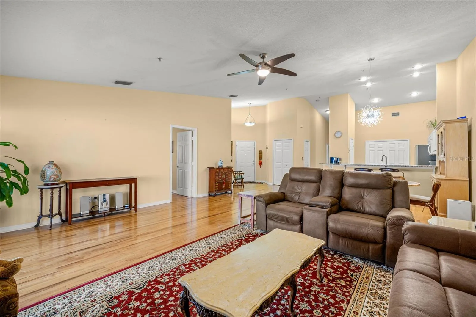 Step into your own peaceful retreat in the highly convenient Meadowood community. This beautifully renovated 3-bedroom, 2-bath end unit condo offers rare privacy and a serene, park-like setting surrounded by mature landscaping. A grand private entrance with custom tile flooring welcomes you into a light-filled, open-concept living space with soaring ceilings that feels both spacious and inviting. The stylish kitchen features granite countertops and a custom movable island with a granite top, ideal for entertaining, casual dining, or everyday living. The expansive great room flows effortlessly into the dining area and opens to a screened lanai, creating the perfect indoor-outdoor space to relax and unwind.