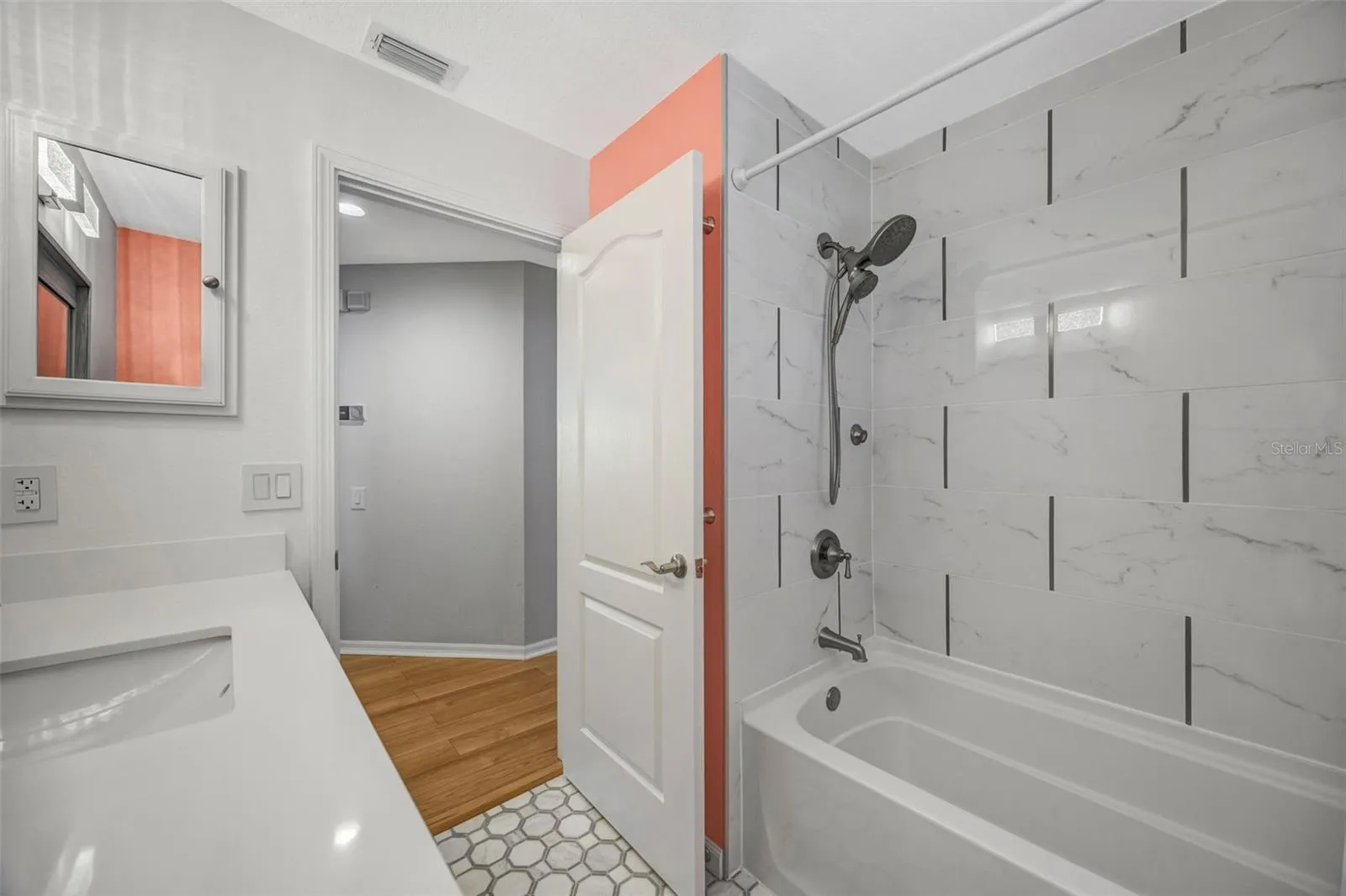 The heart of the home is the stunning kitchen, designed for entertaining, featuring quartz countertops, extra cabinetry, eat-in space, newer appliances, and abundant storage. The spacious primary suite offers custom closets and a beautifully updated bath with dual sinks, an oversized walk-in shower, and plumbing already in place with space to add a soaking tub if desired.