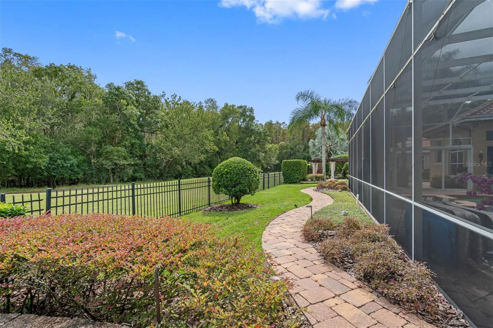 Designer Mediterranean Custom Estate in the Prestigious Wentworth Golf Course Community Welcome to this exquisite custom-built Mediterranean home, ideally situated in a serene cul-de-sac beneath stately oak trees within the famed Wentworth Golf Course Community—one of Tarpon Springs’ most coveted manned-gated neighborhoods. From the moment you arrive, elegance and craftsmanship define every aspect of this home. A custom double walnut front door opens into a grand foyer, setting the tone for the luxurious finishes that continue throughout the residence. To the right of the foyer, you’ll find an expansive formal dining room accompanied by a custom-designed wine room, capable of storing over 350 bottles and featuring a built-in humidor—perfect for the discerning collector. The gourmet kitchen is a chef’s dream, showcasing 42” cabinetry, top-of-the-line Monogram appliances, a large central island, and a cozy eat-in area—ideal for casual family meals or entertaining guests. The owner’s suite is a private retreat, complete with a sitting area and a custom-designed craftsman closet—a standout feature in both form and function. The executive office offers sophistication and productivity, featuring custom cabinetry and shelving. Upstairs, you’ll discover a spacious guest suite or game room—the fifth bedroom—equipped with beautifully crafted built-in wooden cabinetry. Additional upscale features include plantation shutters, integrated surround sound, and meticulous attention to detail throughout. Step outside to your screened brick paver lanai, a true oasis that overlooks the 15th fairway and a peaceful conservation area. Enjoy year-round outdoor living with a outdoor kitchen, saltwater pool and spa, and generous covered seating areas. Just beyond the lanai, indulge in evenings by the stone fireplace, gather around the fire pit, or relax under the pergola surrounded by tranquil fountains. This home is a rare opportunity to enjoy luxury living in one of the area’s most exclusive communities—combining elegant design, functional spaces, and stunning outdoor amenities.
