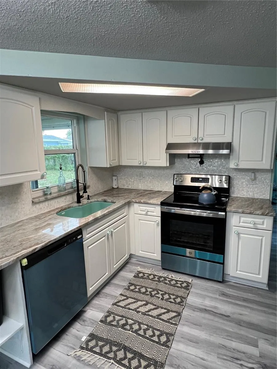 Welcome to 7121 Rockwood Dr., a beautifully renovated home where thoughtful design meets everyday comfort. Every detail has been carefully updated, from the 2-year-old roof, hot water heater, and fresh interior and exterior paint to the fully remodeled bathroom featuring new tile, vanity, mirror, and updated plumbing. The stunning kitchen is a true showstopper, highlighted by blue-hued granite that perfectly complements the baby blue sink, custom wood cabinetry, and a convenient pot filler above the stove—ideal for home chefs. The living space features a fully functional fireplace that provides warmth and visual appeal, accented with unique mermaid and sea glass details.