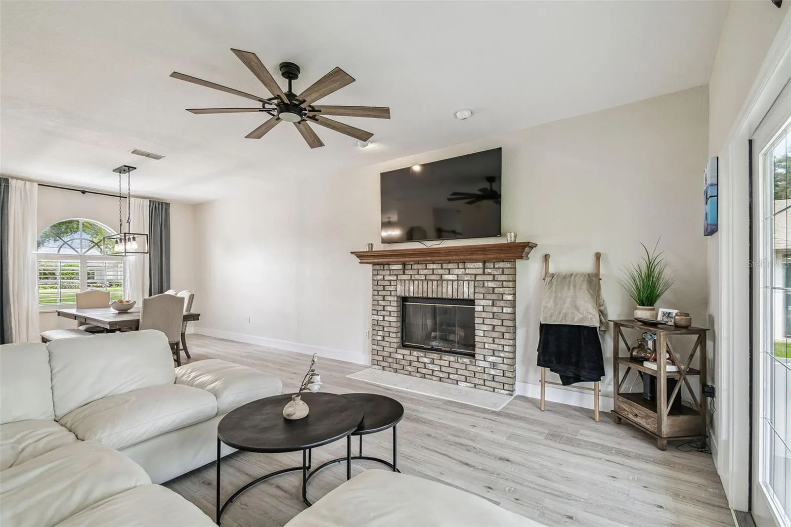 Step inside and be greeted by a spacious open layout featuring a cozy fireplace as the focal point of the living area. The kitchen seamlessly flows into the dining and family spaces with the help of newly placed modern floors, creating a warm and inviting ambience. Enjoy the luxury of a newly renovated primary bathroom along with two newly renovated guest bathrooms. Get cozy in the evening wit the warm lighting of brand new modern light fixtures or wake up to bright fluorescent lighting coming from the updated can lights.