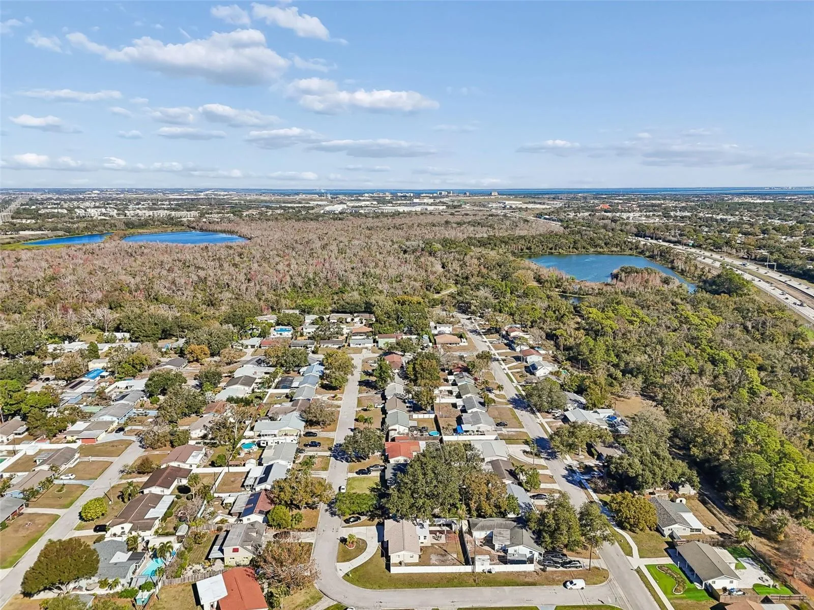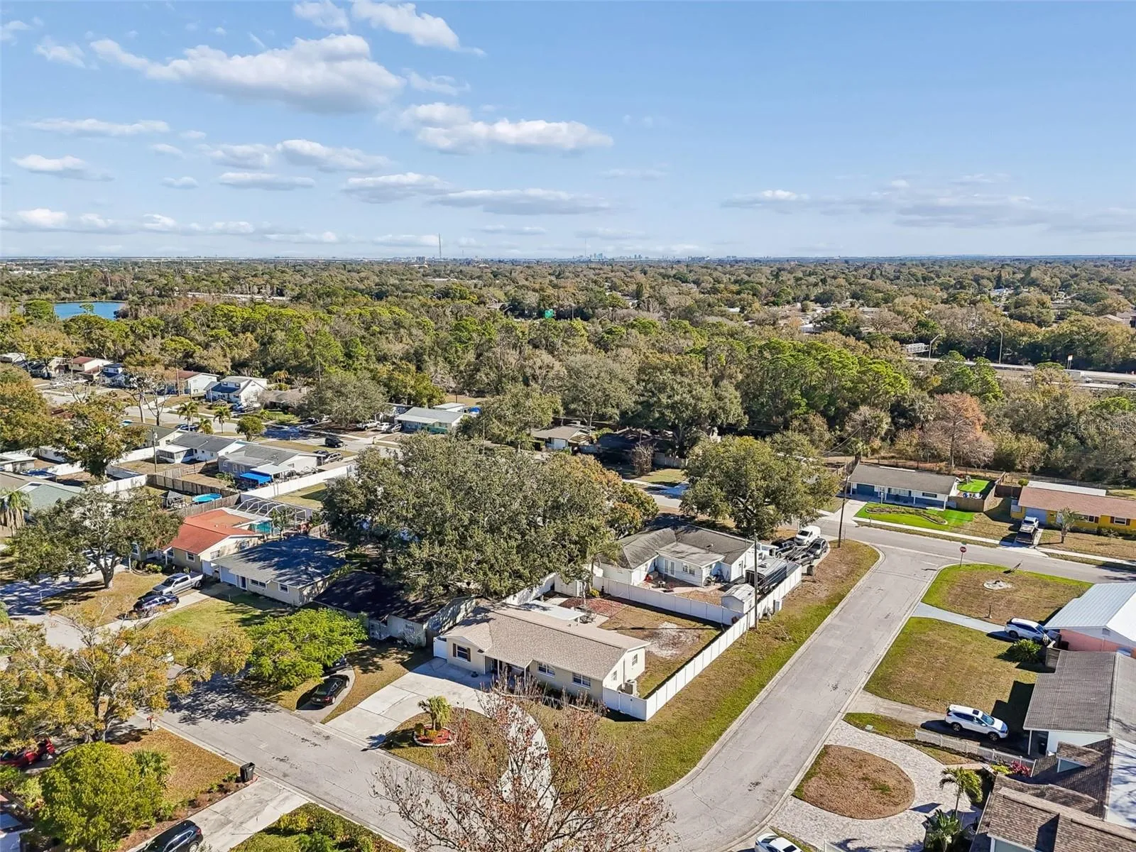 Tremendous opportunity located just minutes from vibrant downtown St. Pete yet tucked away in the Fairview Estates community nestled alongside the nature preserve of Sawgrass Lake Park… over 400 acres of conservation! Expansive nature trails and a lookout tower are among the park’s amenities to enjoy the abundant wildlife and hundreds of stunning red maple trees. Live the tranquility of a natural setting and still feel the dynamic energy of thriving St. Pete! This well maintained, original owner home sits on an oversized corner lot with a circular driveway adding style to its elevation. The over 1,400 square feet includes 4 bedrooms and 2 full baths. The unique floorplan has a double primary bedroom layout as two of the bedrooms have their own ensuite baths! The living area is generous and centered by a lovely eat-in kitchen with gorgeous, dimensional wood cabinetry accented by stylish crown moldings and stainless-steel appliances. Endless possibilities for the expanded living space in the Florida room, (not listed in the square footage). The room is soaked in sunlight and looks out over a pavered patio and an expansive pool sized yard, fully fenced for ultimate privacy. No HOA. Bring your boat, bring your RV, bring all your beach toys…the famed Gulf beaches are just minutes away! Pride of ownership shows in this move in ready home with a comfortable, functional layout. The home boasts new exterior paint and a NEW ROOF!! Centrally located between downtown St. Pete, TPA airport and St. Pete’s beautiful beaches, you’ll have quick access to shopping, dining, and major roadways just minutes away from I-275 and Gandy/Park. A charming home in an ideal location. Make it yours!