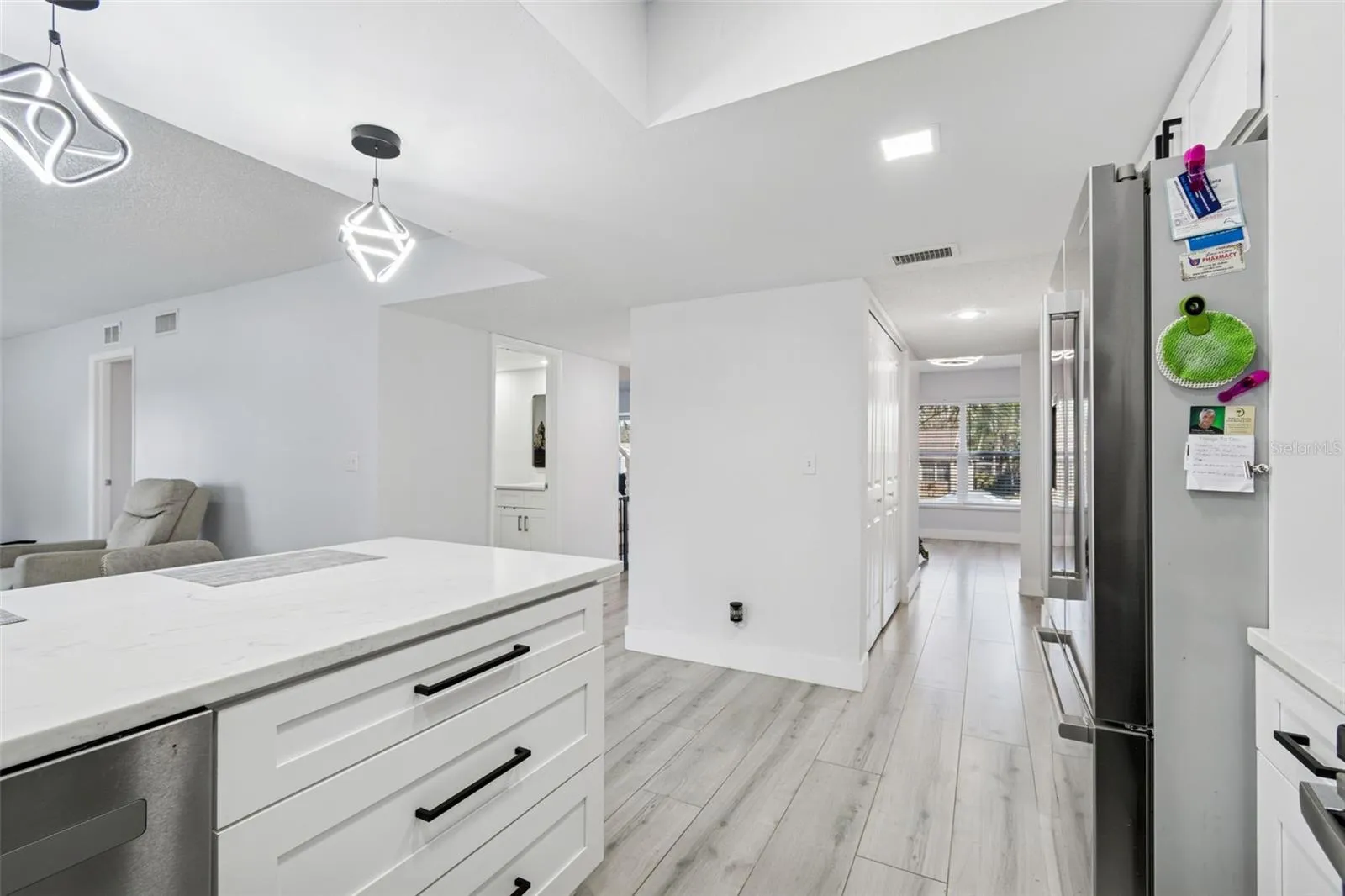 One or more photo(s) has been virtually staged. You will love this spacious two-story home, freshly painted and thoughtfully updated, offering 4 bedrooms and 3 bathrooms in a highly desirable location near Countryside Hospital and top-rated local schools. Designed for both comfort and entertaining, the home features a large living room, a family room with soaring vaulted ceilings, and a separate formal dining room—providing flexible spaces to suit any lifestyle.The bright kitchen is equipped with white cabinetry, quartz countertops, a generous pantry, and new lighting throughout the home, creating a modern and inviting atmosphere. The well-planned layout allows for easy flow between living areas while maintaining privacy where needed. Step outside to the screened porch and enjoy the expansive, newly fully fenced backyard, perfect for relaxing, outdoor gatherings, or pets. The property backs up to an open space, offering added privacy and a peaceful setting with no rear neighbors.