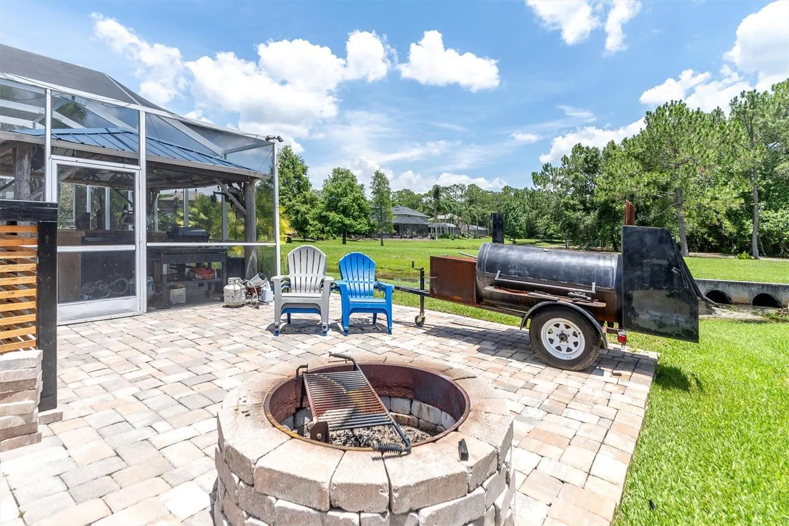 Step into your own outdoor oasis with a private pool and spa, relax under the custom-made Tiki Hut equipped with a kegerator, and enjoy evenings by the pavered fire pit area—an ideal setting for entertainment and relaxation.