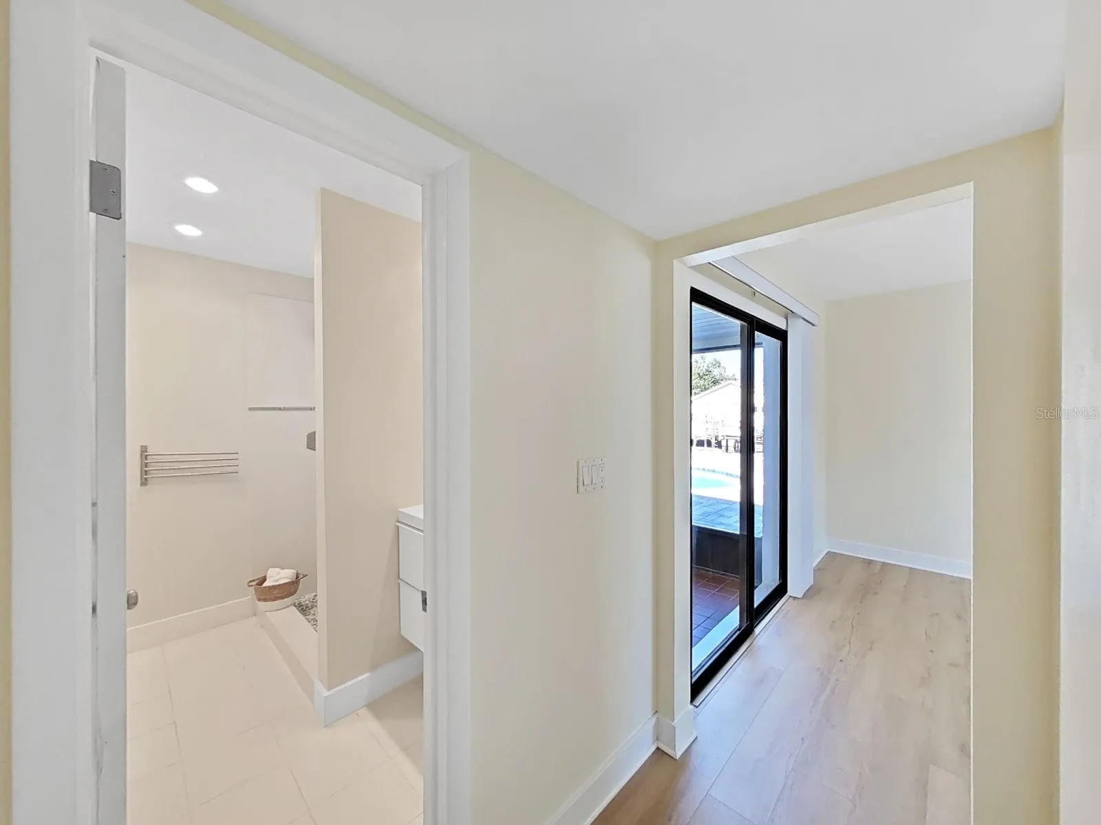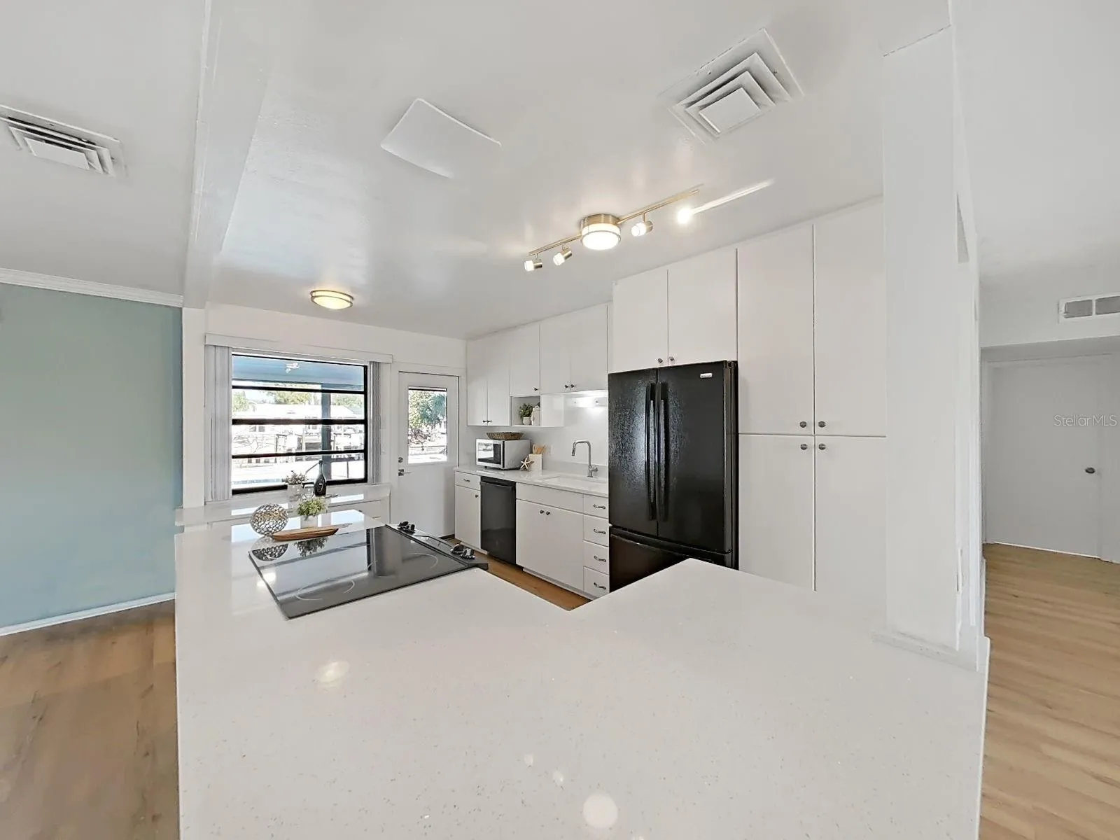 Waterfront retreat in Tampa Shores/Imperial Key! Come catch the cool, coastal vibe in this charming 3-bedroom, 2-bathroom, POOL home, offering the perfect blend of comfort, style, and Florida living. Situated on a picturesque canal with approximately 76 feet of seawall waterfrontage, DOCK with electric, 7,000 LB BOAT LIFT with NEW MOTORS, DIRECT SALTWATER ACCESS to Tampa Bay & The Gulf, and multiple outdoor living areas, this home invites you to LIVE EVERY DAY like you’re on VACATION. Step inside and you’ll immediately feel the spacious and airy open flow. NEW easy-care wood laminate FLOORING throughout most of the home! The updated kitchen features QUARTZ countertops, cabinetry with pull out shelves and drawers, food pantry, and an oversized peninsula ideal for entertaining. Enjoy true Florida living from the rear breezy screened lanai overlooking your sparkling saltwater pool, expansive paver deck, and dedicated fire-pit area, all set against wide views of the tranquil saltwater canal. Experience the occasional playful charm of dolphins & manatees. Cast a line from your backyard seawall and dock or launch from your personal boat lift. Quick and easy access to the open bay by boat or kayak, perfect for boaters and sunset chasers alike. This waterfront paradise offers endless opportunities for outdoor enjoyment! Back inside, the primary suite features sliding glass doors to the lanai and a remodeled ensuite bath with double sinks, step-in shower, and Kohler toilet. Two additional bedrooms and a full updated bath with custom vanity ensure plenty of space for everyone. The double driveway and oversized 1-Car Garage, with pull-down stairs for attic access, provide plenty of parking and storage, plus a backyard 10×12 Storage Shed for tools, toys and extra gear. Enjoy peace of mind with a BRAND NEW electrical panel, two NEWER IMPACT-RATED steel exterior doors, water line re-pipe, and an updated seawall. Great ADDITIONAL FEATURES include: Cultured marble finishes in both baths delivering high style yet low maintenance, comfort height toilets, laundry room with utility sink, washer & dryer pair with matching premium laundry pedestals (with storage drawers) all included, multiple interior closets for storage (including walk-in), new exterior paint, new exterior lighting, and renovated lanai with modern lighting. Tampa Shores is a waterfront community, offering neighborhood social activities & boat ramp for residents. No HOA. Short-term rentals allowed (within county & state regulations). Convenient to airport, grocery & shopping (including Target & Publix), beaches, & just a boat ride away to popular restaurants. Whether for your personal home or as an income-producing property, this is Florida living at its best: boating, entertaining, and relaxing waterside, right from your own backyard. Your paradise is waiting!