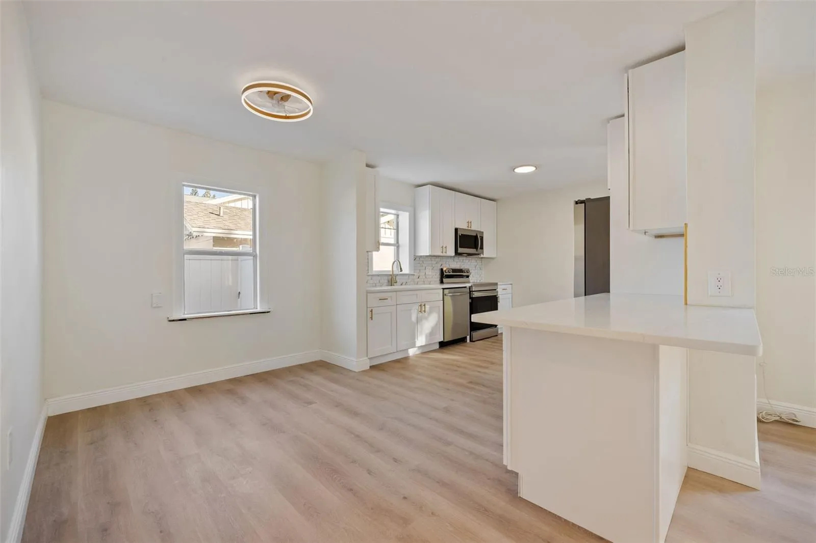 This stunning 2025 remodel offers complete peace of mind with brand-new roof, AC, water heater, kitchen, baths, flooring, and paint. Step inside to a bright, open floor plan with elegant finishes, luxury vinyl flooring, in unit laundry, and a showpiece kitchen featuring quartz counters, custom cabinetry, and stainless-steel appliances.