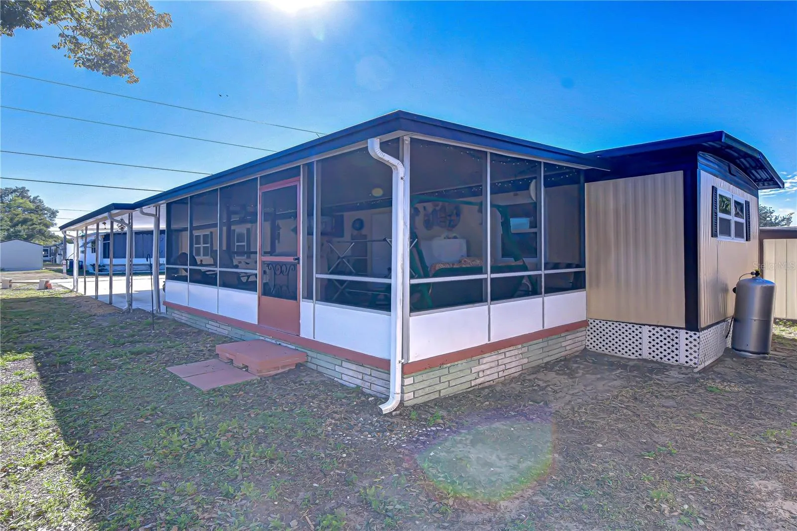 Completely remodeled single-wide mobile home situated on a beautiful double lot totaling approximately .17 acres in a 55+ community, with owner-owned land—no lot rent. This turn-key home has been thoughtfully updated inside and out and is being sold fully furnished, including all appliances and washer/dryer.Enjoy outdoor living with a covered porch, covered carport, and a large screened-in Florida room—perfect for relaxing year-round. The property also features two storage sheds and is fenced on three sides for added privacy.Inside, the home has been completely refreshed with new interior and exterior paint, replacement windows, and new Pergo flooring throughout. The kitchen boasts new cabinetry, countertops, sink, faucet, backsplash, and updated plumbing, while the bathroom has been fully updated with a new shower, toilet, fixtures, and plumbing. Additional upgrades include wainscoting throughout, new light fixtures, and ceiling fans with lights in the living room and bedrooms.Major improvements include a new central A/C unit and the convenience of an owner-owned septic system. The park supplies water from its private well, meaning no county water or sewer bills.Low annual HOA of just $500, which includes water—an incredible value rarely found in Florida. Whether you’re looking for a seasonal retreat to escape cold winters or a comfortable year-round residence, this move-in-ready home checks all the boxes.