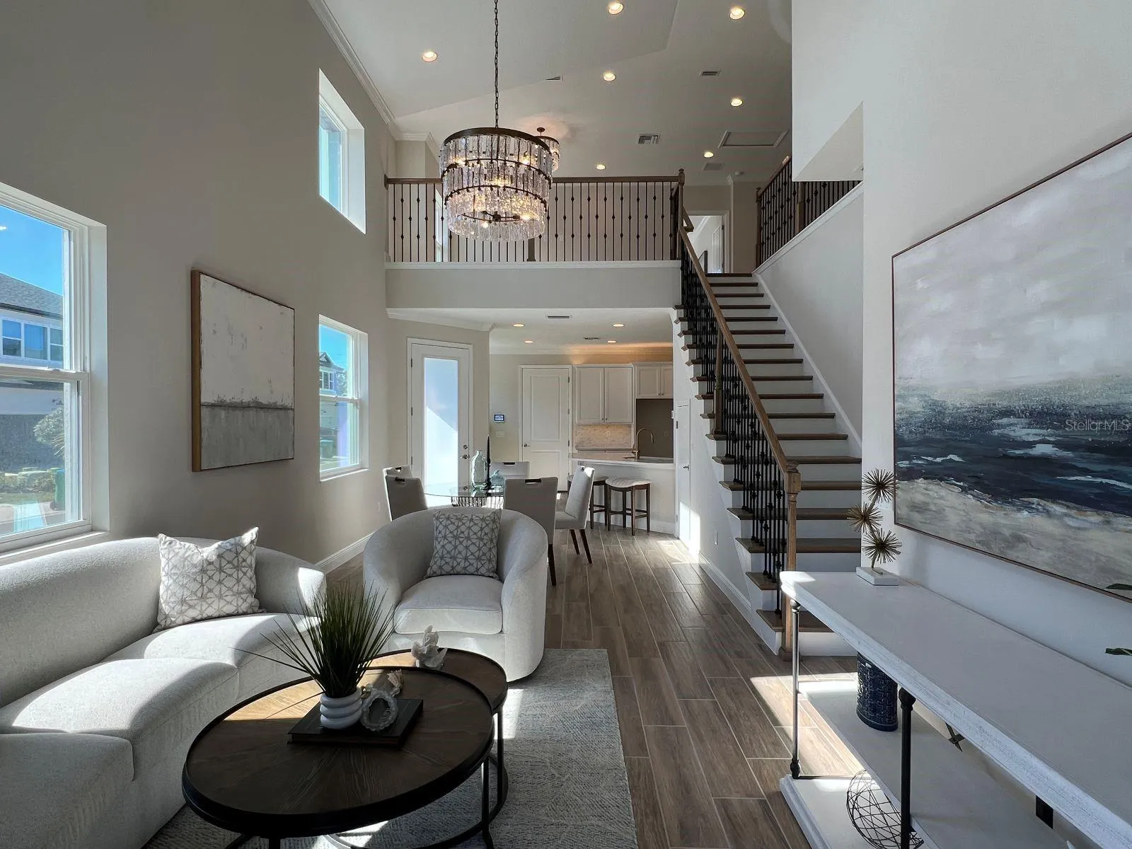 BRAND NEW – FLOOD ZONE X, highly sought after A Model home plan with the primary suite on the first floor!! It’s all in the details, impeccably chosen designer options from flooring, wall tile, lighting, staircase, fixtures, you name it! Light 42″ wood cabinetry with crown molding and under/over cabinet lighting. Geometrical tile backsplash and beautiful veins in the quartz countertops. Wide open home plan with an abundance of natural light from thoughtfully designed windows and the soaring ceilings. Modern spa like elegance in the high gloss tiles, gold plumbing fixtures in the primary ensuite. Craftsmanship shows in the details of the staircase and railings, light-stained oak treads, painted risers, and decorative spindles showcase the open first and second floors. Spacious loft features tile flooring, beautiful lighting, and thoughtfully place floor outlet for lamps, electronics, etc. Guest bedrooms share a bathroom yet privately positioned. Sip your beverage of choice on the screened lanai overlooking the pond without the bug bites. True end unit on a corner homesite. Boutique community with only 34 townhomes, low HOA fees, and NO CDD! Realize savings with your purchase through New Home Insurance Discounts, New Home Warranty, and Flood Zone X! Only 2.5 miles to the pristine public beaches, close to marinas, boating, dining, shopping, city life, night life, parks, recreation, yet tucked away from the hustle and bustle. Call today for your appointment!!