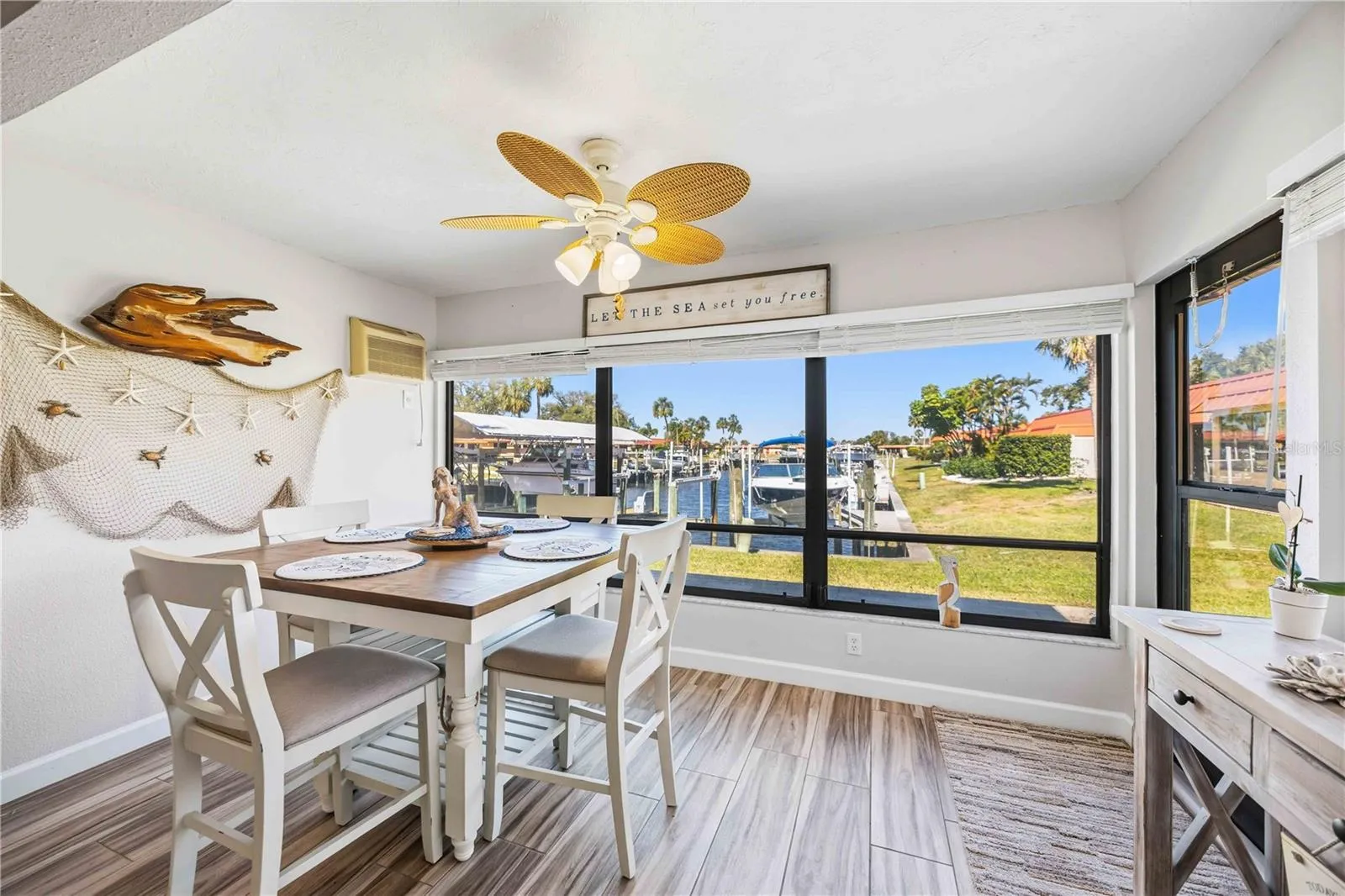 This home features a split floor plan—one bedroom with an en-suite bath, and the other perfect for guests. A covered carport with additional storage room is included, with guest parking conveniently close. Unique to this offering, this villa can be purchased alongside the adjacent fully remodeled unit. Imagine owning both side-by-side with two interchangeable boat slips—whether you prefer the larger or smaller lift, you have options to tailor your waterfront lifestyle or an offer depending on your needs.