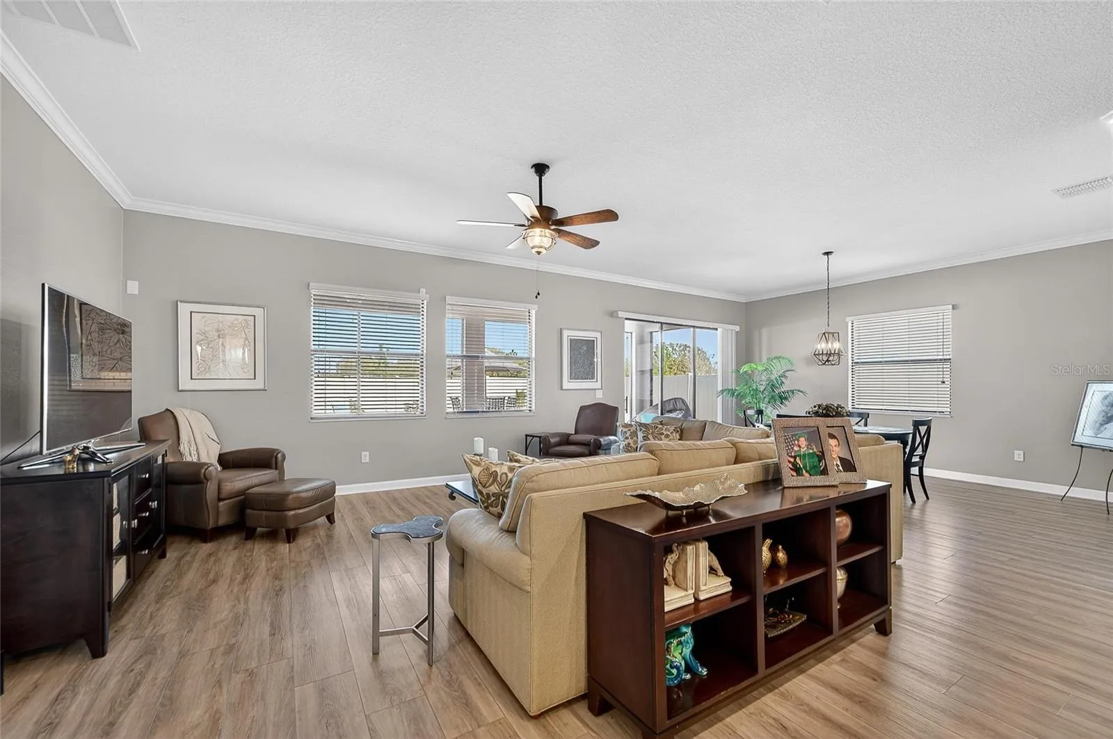 Welcome to elevated, resort-style living in the highly desirable 55+ Medley at Southshore Bay community, where comfort, quality upgrades, and lifestyle amenities come together in one exceptional home. Located at 16810 Scuba Crest Street in Wimauma, this beautifully enhanced residence offers approximately 2,239 square feet of thoughtfully designed living space, featuring two spacious bedrooms, two and a half bathrooms, and a versatile flex room ideal for a home office, hobby space, or additional guest accommodations. From the moment you enter, you are welcomed by luxury vinyl plank flooring, crown molding details, and an open, airy layout designed for both everyday living and entertaining. The home showcases numerous interior upgrades including a finished garage floor, water softener system, upgraded front door screening, light dimmer switches, and updated countertops and backsplash that add a modern and polished feel to the kitchen and living spaces. The guest bedroom offers privacy and comfort with its upgraded en-suite bathroom featuring granite finishes, while the primary suite is designed as a relaxing retreat with a contemporary linear bathroom layout, dual sinks, comfort-height granite vanity, oversized walk-in shower, and an expansive walk-in closet providing generous storage. Additional functional highlights include a butler’s pantry, large walk-in pantry, and spacious laundry room designed to make daily living seamless and organized. Outdoor living has been enhanced with beautiful landscape curbing, screened lanai, extended paver patio, fenced yard, upgraded exterior lighting, and a lanai ceiling fan, creating the perfect space to enjoy Florida’s year-round outdoor lifestyle. Residents of Medley enjoy exclusive access to the private Medley Amenity Center featuring a resort-style pool with lap lanes, state-of-the-art fitness center, social gathering spaces, billiards, card room, pickleball and bocce courts, plus an on-site restaurant open for convenient dining. In addition, Southshore Bay residents enjoy access to the breathtaking 5-acre Crystal Lagoons Metro Lagoon, offering private cabanas, kayaking, paddleboarding, sandy beach areas, swim-up experiences, and recreational activities. The community also features walking paths and a dog park for added convenience. Ideally located with easy access to US-301 and I-75, this home is positioned near shopping, dining, and entertainment in Riverview, Apollo Beach, and Brandon. Nearby dining favorites include Circles Waterfront Restaurant, Finn’s Dockside Bar and Grill, and local favorites along the Southshore corridor. Nearby attractions include Little Manatee River State Park, E.G. Simmons Park, and waterfront recreation along Tampa Bay. Medical facilities including St. Joseph’s Hospital South and South Bay Hospital are within convenient driving distance, providing peace of mind and accessibility. This home offers the perfect combination of upgraded interior living, outdoor enjoyment, and an active, amenity-rich lifestyle in one of South Hillsborough County’s most desirable active adult communities.
