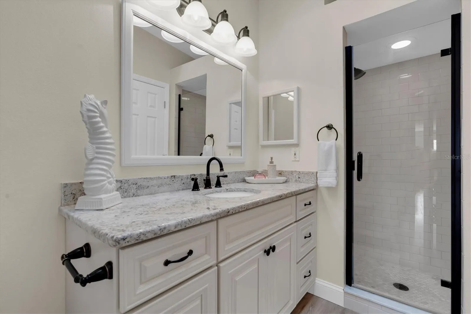 Both bathrooms have been fully updated with new tile, new vanities, new fixtures, and granite countertops, creating a fresh, spa-like feel.