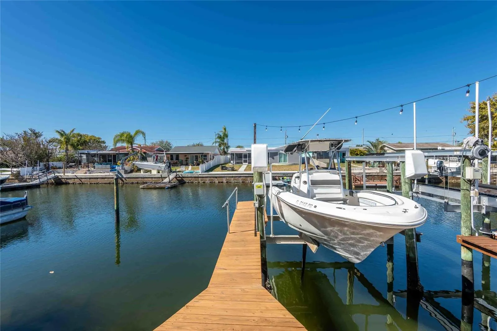 One or more photo(s) has been virtually staged. Welcome to your tropical paradise in the highly sought-after waterfront community of Gulf Harbors. Tucked away near the end of one of the most desirable cul-de-sacs, this beautifully renovated 3-bedroom, 2-bath coastal home offers 1,720 square feet of heated living space with direct Gulf access and no bridges. The exterior impresses with a paver driveway and walkway, lush landscaping, new exterior paint, and gutters. Inside, the thoughtfully designed split floor plan places the primary suite at the front of the home, featuring a walk-in closet with an updated ensuite bath with a walk-in shower. Down the hall you will find the second bedroom with a built-in vanity/desk. The third bedroom has a walk-in closet and its own bath. The heart of the home opens into a bright and airy dining area and great room, filled with natural light and serene canal views. Just off the great room is the expansive gourmet chef’s kitchen, showcasing all-new soft-close wood cabinetry with abundant storage, tiled backsplash, granite countertops, newer LG stainless steel appliances, and a cozy eat-in area. You will have peace of mind as this home was completely renovated in 2024/2025 including new PEX/PVC plumbing, HVAC system, electrical panel with extra fuses, a surge protection system for the entire home, generator and RV hookups, tankless water heater, ceramic tile flooring and a new garage door. The roof was replaced in 2020 and double-pane windows were installed in 2017 and this home also has hurricane shutters. Step outside to your private backyard oasis, perfect for entertaining or relaxing. Enjoy a large Tiki bar, dining area, pergola with a swing, above ground pool which is perfect for cooling off after a day on the water and an outdoor shower. You will also enjoy the concrete sundeck, and a 2-year-old dock with a water spigot and electric leading to a 10,000-lb boat lift. The deep-water canal offers quick, direct access to the Gulf. A 2011 Pioneer center console boat is also available. Residents have the option to join the exclusive Gulf Harbors Private Beach Club for just $180 annually, featuring pristine sandy beaches, 21 pavilions, grills, restrooms, and breathtaking sunsets which is 3 minutes down the road from this home. Membership in the Gulf Harbors Civic Association is available for $150 annually, providing access to community clubs and two boat ramps. The neighborhood is golf cart friendly and conveniently located just 3.2 miles from historic downtown New Port Richey, home to Sims Park, festivals, concerts, shops, restaurants, and breweries. This exceptional waterfront home offers the Ultimate Florida Lifestyle! Do not miss your opportunity to make it yours.