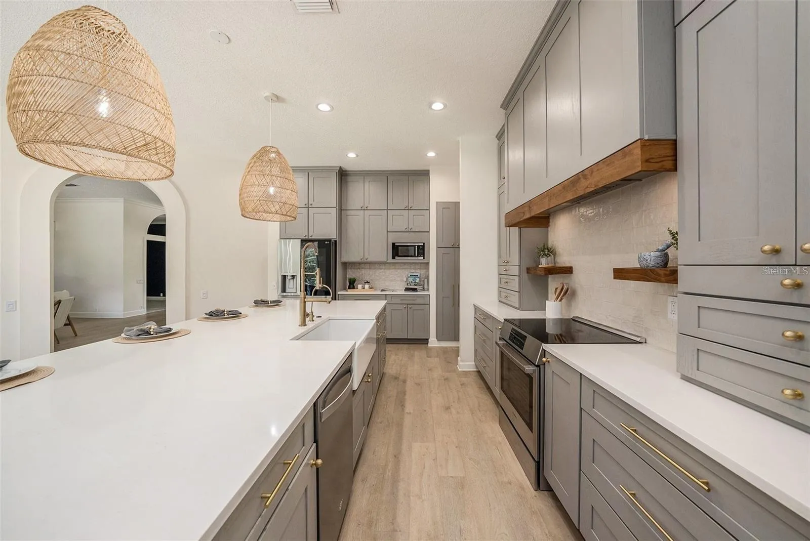 WELCOME HOME to 4324 AUSTON WAY located in the highly desired LANSBROOK Community and the EAST LAKE CORRIDOR! This stunningly FULLY REMODELED, one story, estate pool home in Aylesford of Lansbrook features 4 BEDROOMS, 3 BATHROOMS, 3-CAR GARAGE, a FLEX SPACE to utilize as an office, den, or playroom, a newly converted and resurfaced SALT WATER POOL. The improvements and updates done to this home include an EXQUISITE KITCHEN, new appliances offering a MASSIVE ISLAND with storage throughout, anchored by HIGH END QUARTZ COUNTERS, a farmhouse sink, coffee bar, brass hardware and beautiful finishes. The family room hosts a fire place and vaulted ceilings that adjoins to the kitchen, perfect for family gatherings and entertaining with POCKET SLIDING DOORS leading to the POOL. A SPLIT FLOOR PLAN hosts a private master suite with ensuite, two bedrooms off the living space with an additional bathroom, along with the fourth bedroom in the back of the home, a PERFECT SPACE FOR A TEEN OR IN-LAW SUITE, complete with a pool bath. An INSIDE LAUNDRY ROOM off the garage completes the wonderful lay out of this luxury home’s open floor plan. As if you needed more, this home also sits in a NON-FLOOD ZONE and an A-RATED SCHOOL DISTRICT. Just when you think it couldn’t get any better – FEATURES INCLUDE: NEW HOT WATER HEATER (2024); HOT TUB (HOT SPRINGS 2023) 10K INCLUDING HOME WIRING; NEW WOOD BASEBOARDS THROUGHOUT; NEW FLOORING THROUGHOUT – INCLUDING WATERPROOF LUXURY VINYL FLOORING BY CORETEC (2021); WITH THE ADDITION OF BEDROOMS (2024) AND DESIGNER TILE; BEAUTIFUL FEATURE WALL IN OFFICE; LED LIGHTING UPGRADES THROUGHOUT; WOOD BEAM ADDED TO FAMILY ROOM VAULTED CEILING (2023); ELEVATED FIREPLACE; LAVISH COMPLETELY REMODELED KITCHEN; FARMHOUSE SINK; ZELLIGE DESIGNER TILE BACKSPLASH IN KITCHEN; ALL STAINLESS STEEL APPLIANCES; NEW BOSCH OVEN (2022) NEW REFRIGERATOR FEATURING GLASS DOOR AND CRAFT ICE (2022), DISHWASHER (2022), AND MICROWAVE (2021); NEW INTERIOR DOOR GOLD HARDWARE (2021); CONVENIENT BUILT-IN CUBBY FOR ALL YOUR KIDS (AND ADULTS) EXTRAS – SHOES, BACKPACKS, JACKETS, KEYS, ETC. – OFF THE GARAGE AS YOU ENTER HOME; WOOD CEILING ON LANAI (2023); NEW AC AND DUCTWORK (2021); A/C UV FILTRACTION AND SANITIZATION (2023); WIRED FOR SECURITY WATER SOFTENER (2022), WATER SOFTENER MAINTENANCE REFRESH (2024); PEBBLE BRITE POOL RESURFACE (2020); POOL FILTER (2022) GUTTERS (2021); NEW ROOF (2017); POCKET SLIDING DOORS THAT OPEN THE FAMILY ROOM UP TO THE POOL AREA. Located withing walking distance to the PINELLAS TRAIL; LANSBROOK PARK offering PLAYGROUNDS, BASKETBALL COURTS, AND A HUGE SOCCER FIELD, COMPLETE WITH A LAKESIDE PAVILION AT THE LAKEFRONT PARK. Close to shopping, pubs and restaurants; the DUNEDIN CAUSEWAY; JOHN CHESTNUT PARK and SO MUCH MORE! Easy access into DOWNTOWN DUNEDIN, SAFETY HARBOR; DOWNTOWN TAMPA; HOME TO THE BUCS, LIGHTNING AND RAYS; TAMPA INTERNATIONAL AIRPORT; ST PETE/ CLEARWATER AIRPORT AND THE WHITE SANDS OF CLEARWATER BEACH. THIS HOME IS CENTRAL TO SOME OF THE MOST SOUGHT AFTER ATTRACTIONS IN OUR AREA! TIS THE SEASON TO TREAT YOURSELF TO YOUR DREAM HOME …. Come take a look **ASSUMABLE VA MORTGAGE**