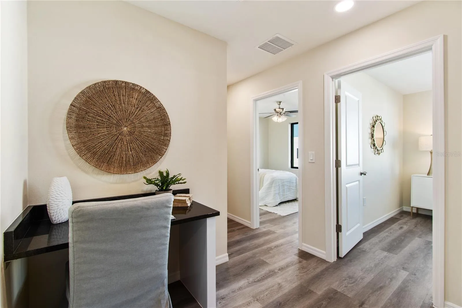 Affordably priced and thoughtfully designed, this brand new two-story townhome offers 3 bedrooms, 2.5 baths, and a 1-car garage with modern finishes throughout. Hurricane-impact glass entry doors welcome you into a bright, open-concept living and dining area filled with natural light. The designer kitchen features granite countertops, modern backsplash, and recessed lighting, blending luxury style with everyday functionality. Upstairs you’ll find three spacious bedrooms and contemporary finishes. A dedicated workspace with a custom granite desktop adds convenience for remote work or study. The hacienda-inspired exterior delivers timeless curb appeal, while the location provides easy access to Busch Gardens, Moffitt Cancer Center, major medical facilities, dining, and entertainment. Up to $50,000 in down payment assistance for qualified buyers. Don’t miss the opportunity to own new construction in Tampa. Photos are of a furnished model and are for illustrative purposes only.
