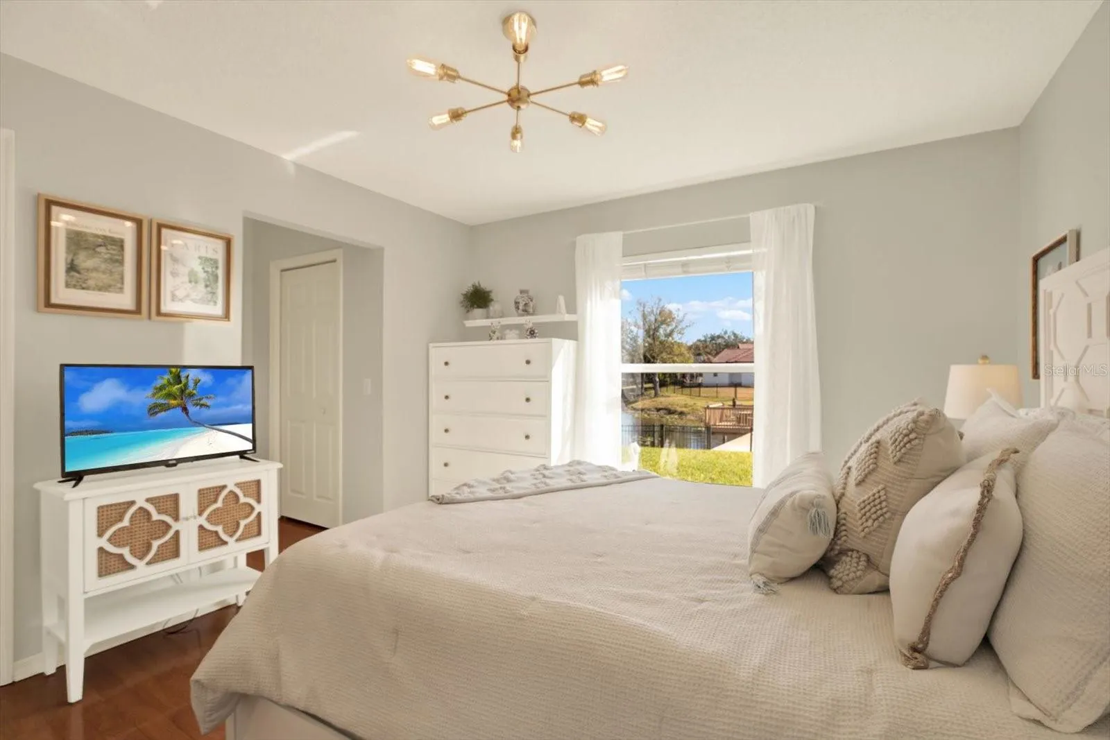 The home offers a desirable three way split bedroom layout. Two bedrooms off the living area share a renovated bathroom, with one currently customized as a closet and dressing room (every woman’s dream!). The fourth bedroom serves as an ideal guest suite, overlooking the lake with its own ensuite bathroom and direct pool access.