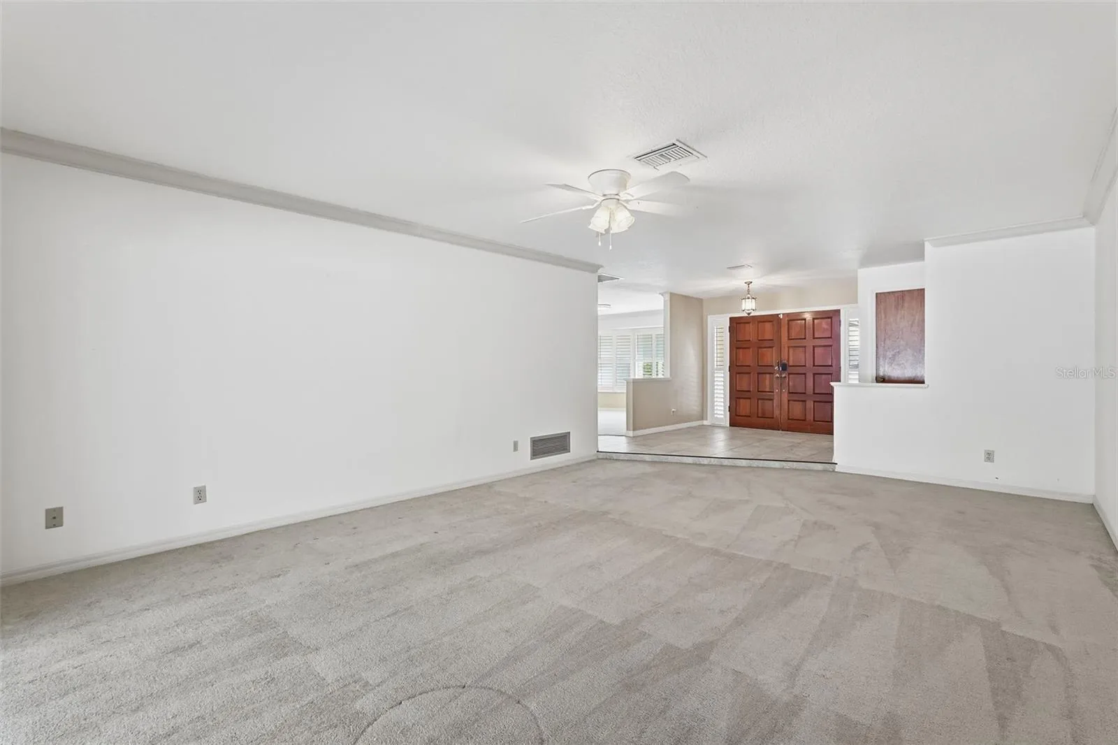 Welcome to 2912 Mill Stream Court, where refined comfort and everyday livability come together in a setting designed to impress. Quietly positioned at the end of a cul-de-sac, this expansive single-story residence offers more than 3,200 square feet of thoughtfully designed living space on a generous 0.32-acre lot. From the moment you arrive, the timeless curb appeal and private driveway set the tone for what lies within. The 4-bedroom, 3.5-bath ranch-style layout features soaring ceilings, abundant natural light, and a seamless flow accented by ceramic tile, plush carpeting, and a warm wood-burning fireplace. The split floor plan provides both privacy and connectivity, while the heart of the home centers around a beautifully appointed kitchen with solid surface countertops, rich solid-wood cabinetry, and an open connection to the spacious family room perfect for everyday living and entertaining alike. A formal dining room and separate living room add flexibility for gatherings of any size, while each bedroom offers built-in storage and a tranquil retreat. The oversized primary suite is privately positioned and features a spa-inspired bathroom designed for relaxation. Extending the living space outdoors, the rear of the home opens to a Florida room that flows into a fully screened lanai and private in-ground pool, surrounded by mature landscaping and complete privacy ideal for entertaining, relaxing, or enjoying quiet mornings. Additional highlights include solar panels for energy efficiency, full public utilities, a two-car attached garage with convenient pool bath access, an interior laundry room, hurricane shutters, a dedicated dog run, and vinyl fencing that enhances both privacy and curb appeal. From its flexible living spaces to its resort-style outdoor amenities, this home delivers comfort, functionality, and timeless style making 2912 Mill Stream Court not just a place to live, but a place to truly thrive.