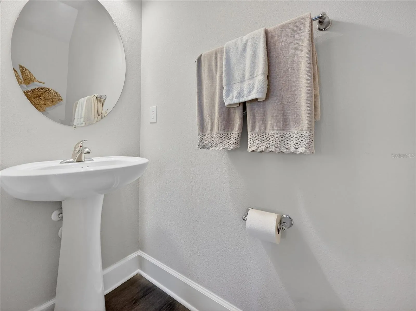 Natural light fills the home through tinted windows and sliding glass doors that help reduce UV exposure and heat while still allowing sunlight to shine through and providing added daytime privacy. A conveniently located half bath completes the main floor.