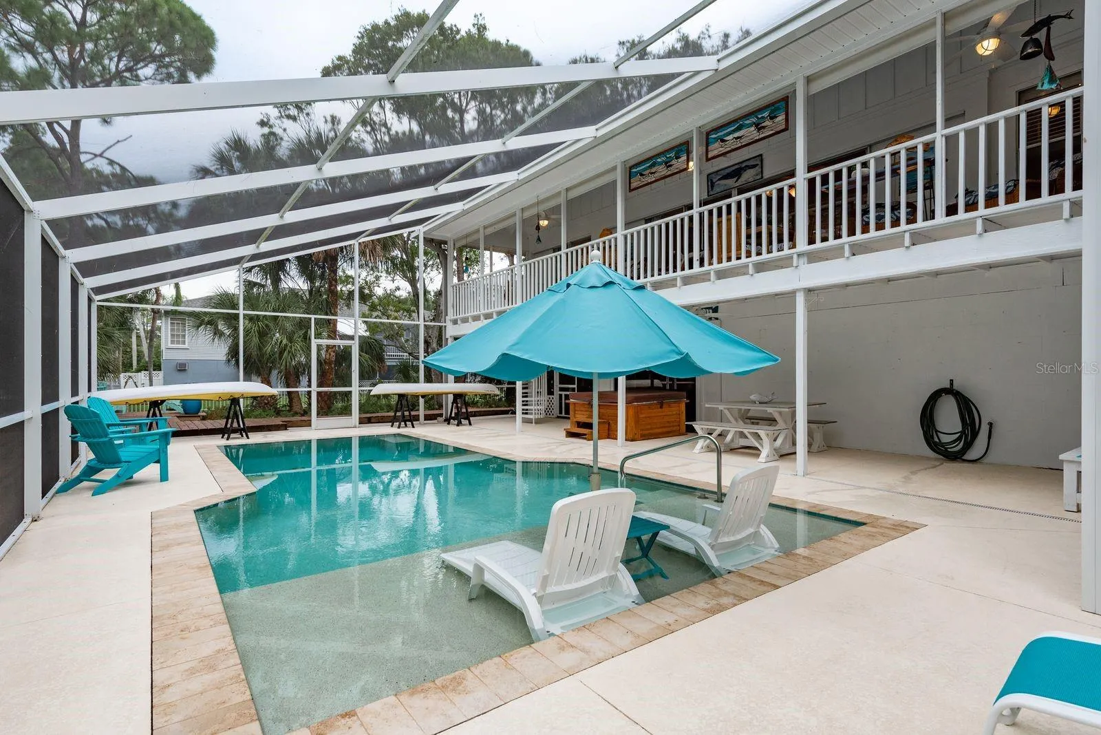 If you’re looking for that Florida lifestyle, then this home is for you. Stunning Key West-style characteristics adorn this move-in ready 3-bedroom, 2-bathroom home WITH 1 bed/1 bath apartment downstairs (not accessible from the main living quarter, has its own entrance). Upon entering the main level, you will notice the bright, open layout with the kitchen, dining and living room being the heart of the home. Features include oak flooring throughout, a split floor plan, crown molding, and more. The spacious living room has a custom coffered bamboo ceiling, 16 ft sliding glass doors that lead out to the screened-in expansive porch. The gourmet kitchen has an open plan with a large breakfast bar, tons of storage & countertop space, Corian counters, white appliances, and recessed lighting. Master retreat has sliding glass doors leading to the porch, walk-in closet and a private bath. Two additional guest rooms on the other side of the home with a spacious guest bath. The 4th bedroom and 3rd bathroom are located downstairs on the first level, which features a living room and a private screened patio. The newer oversized screened-in pool has a sun-shelf for poolside lounging. Be the first to use the stand-alone hot tub!! Nestled on over a quarter-acre lot, the backyard has a white vinyl privacy fence and features an RV/Boat parking concrete drive with a 10-foot gate. Located in historic Ozona, a golf cart community, which is walking distance to Pop Stansel Park, the Pinellas Trail, restaurants, & Historic Downtown Palm Harbor. Zoned for Ozona Elem, PH Middle & PH University High.